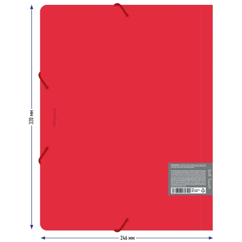 Папка пластиковая на резинках Berlingo серии Soft Touch формата А4 станет идеальным и стильным помощником в работе и учёбе. Изделие размером 320*246 мм изготовлено из высококачественного полипропилена с особой фактурой с эффектом софт-тач. Папка имеет надежные застежки-резинки. Мягкие и в то же время прочные резинки обеспечивают быстрый доступ к содержимому. Толщина обложки - 600 мкм. Изделие имеет корешок 5-32 мм и вмещает до 300 листов. Индивидуальная упаковка в прозрачный пакет по форме. Папка оснащена съемным стикером с выходной информацией и штрих-кодом.