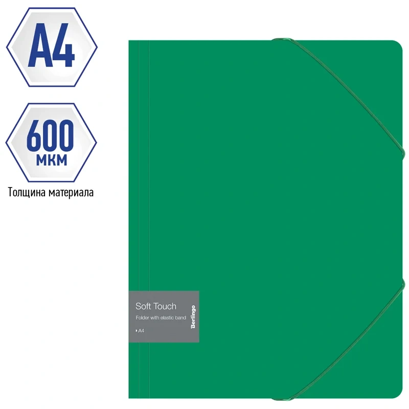 Папка на резинке Berlingo 'Soft Touch' А4, 600мкм, зеленая