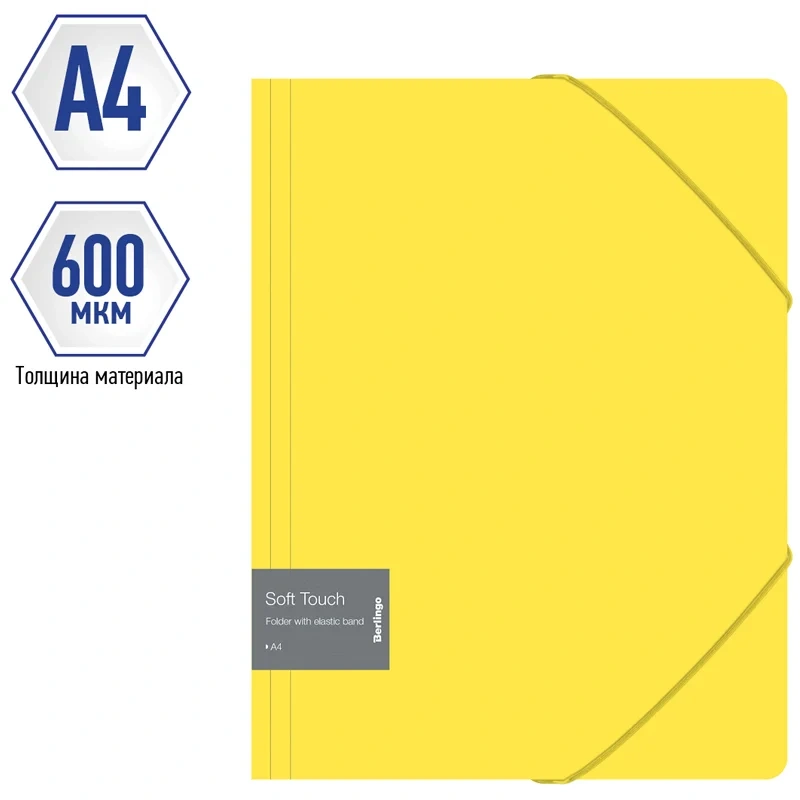 Папка на резинке Berlingo 'Soft Touch' А4, 600мкм, желтая