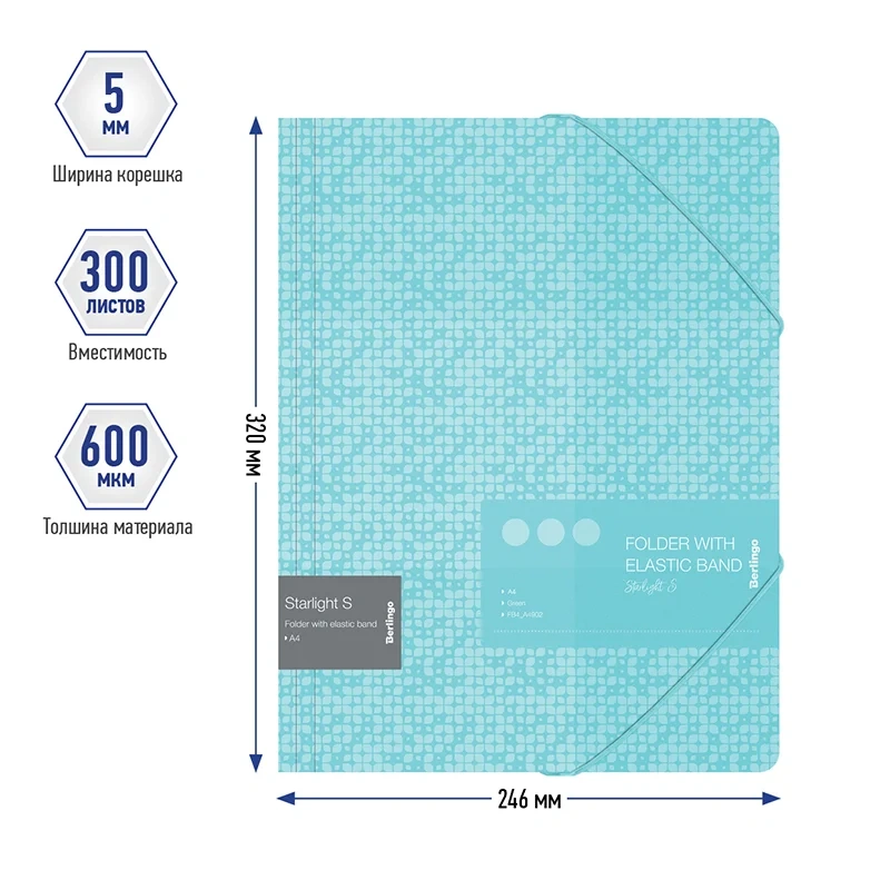 Папка на резинке Berlingo 'Starlight S' А4, 600мкм, зеленая, с рисунком