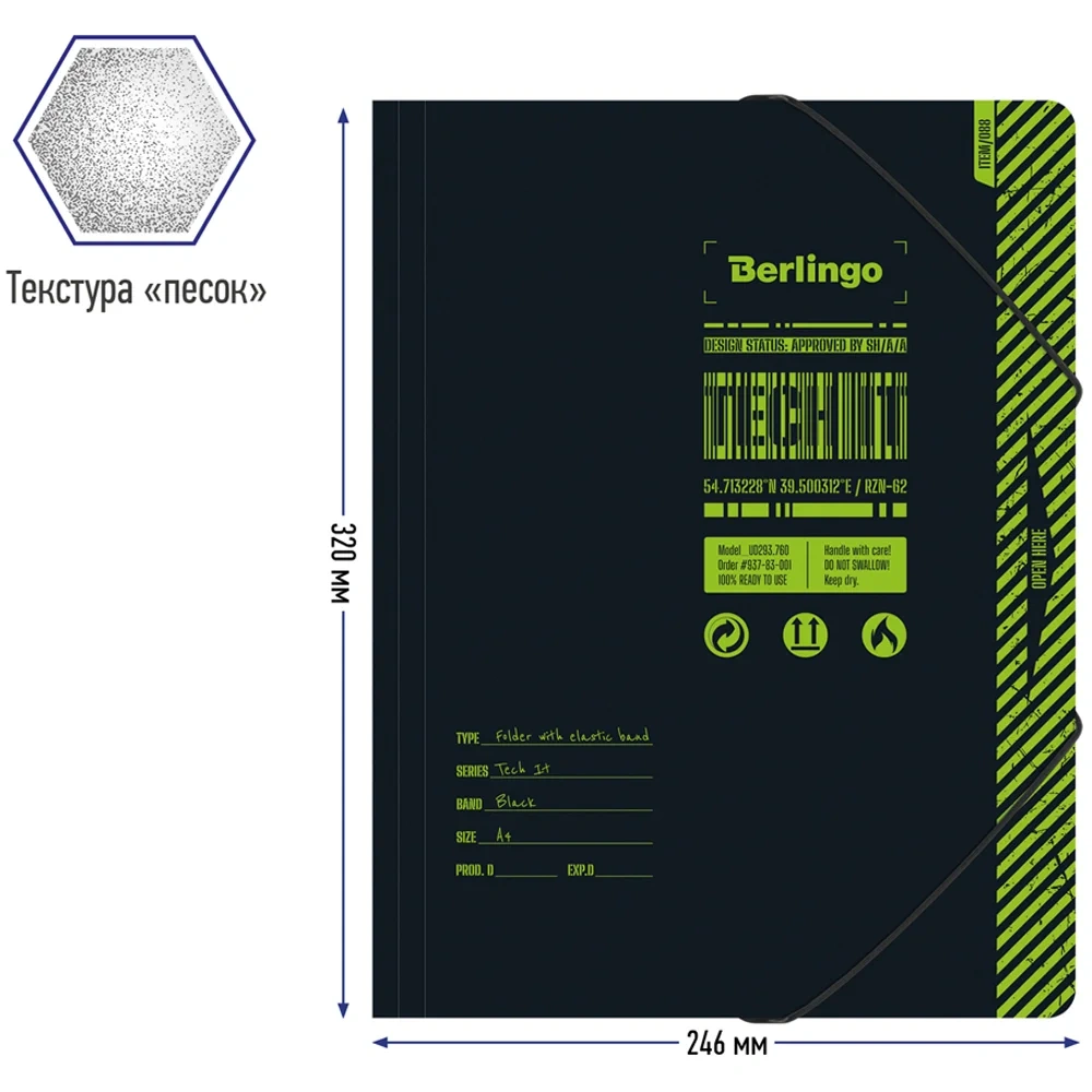 Папка пластиковая на резинках Berlingo Tech it формата А4 с рисунком. Размер папки 320*246 мм. Вместимость папки – 300 листов.