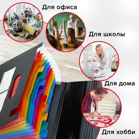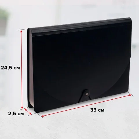Папка-органайзер для бумаг и документов на резинке, 13 отделений, BRAUBERG DOCS, А4, черная, 271152