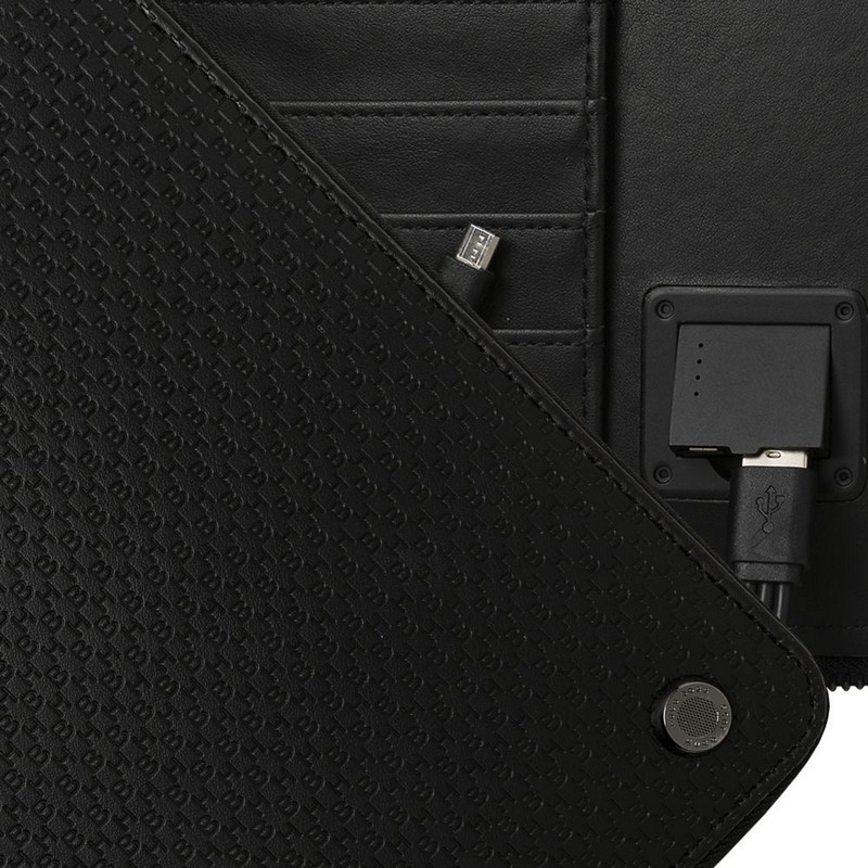 Тисненый паттерн с монограммой бренда на обложке издалека напоминает модное плетение, аккуратно напоминает о происхождении предмета и делает папку тактильно приятной, добавляя рельефности. Блокнот и встроенный аккумулятор на 8000 мА/ч пригодятся во время деловых встреч, долгих переговоров или коротких командировок. Материал: искусственная кожа Размер: 17,5х23,5х2 см Цвет: черный
