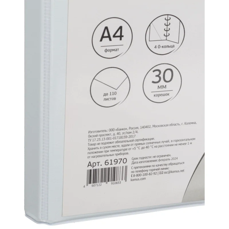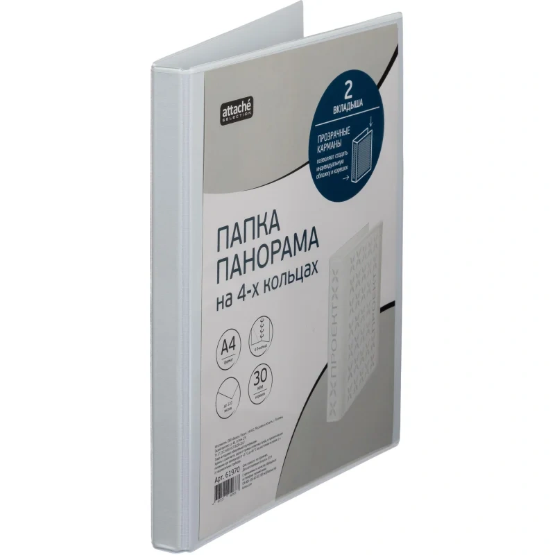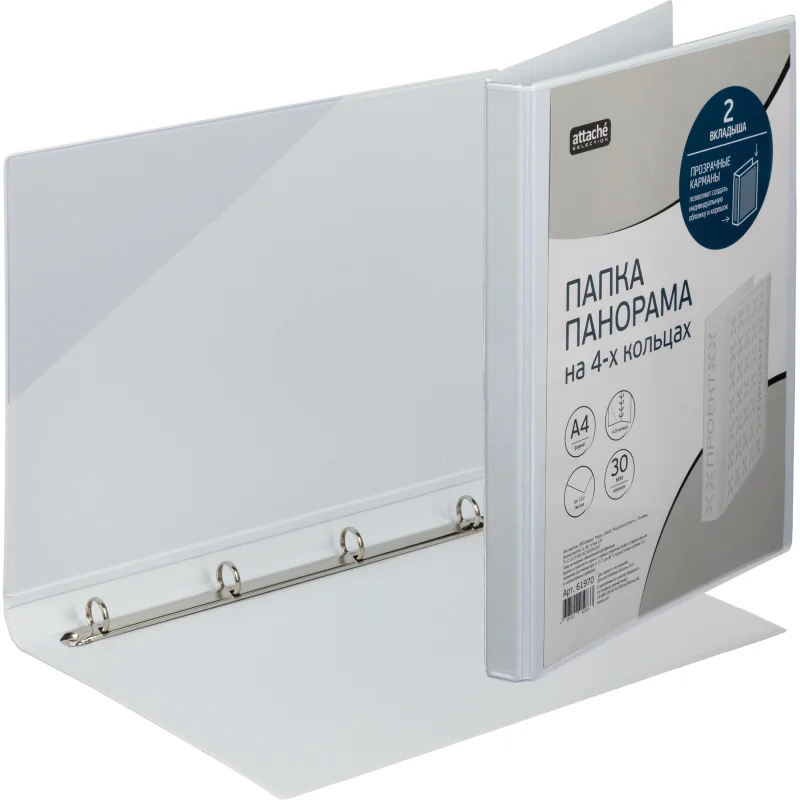 Папка-панорама на 4-х кольцах А4 Attache белая, 30 мм, 1200