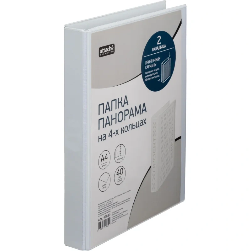 Папка-панорама на 4-х кольцах А4 Attache белая, 40мм, 1203