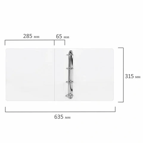 Папка стандартного формата А4 вмещает до 400 листов. Изготовлена из плотного картона с покрытием ПВХ толщиной 2 мм. Лицевая и боковая стороны папки снабжены прозрачными карманами, а на внутренней стороне имеется карман из ПВХ. Ширина корешка составляет 65 мм. Папка оснащена четырьмя кольцами D-образной формы, которые обеспечивают надежное хранение документов. В неё можно вставить файлы или проколотые дыроколом документы. Допускается влажная обработка поверхности. Каждая папка упакована в индивидуальный пакет.