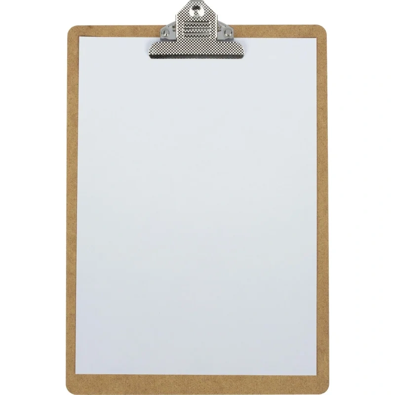 Папка-планшет формата А4 (230?326) изготовлена из HDF (High Density Fiberboard) — древесноволокнистой плиты высокой плотности, толщиной 3 мм, к которой крепится металлический зажим типа 'бабочка', позволяющий фиксировать до 110 листов и который дает возможность разместить планшет на вертикальной поверхности.