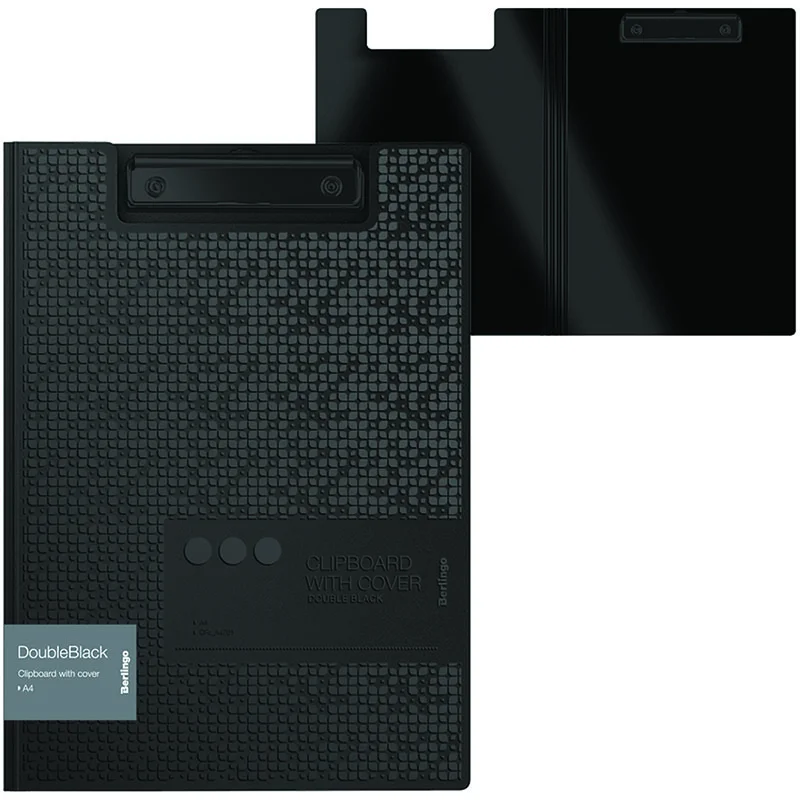 Папка-планшет с зажимом Berlingo 'DoubleBlack' А4, пластик, 1300мкм, черная, с рисунком