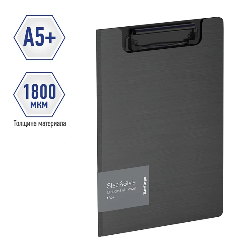 Папка-планшет с зажимом Berlingo 'Steel&Style' A5+, 1800мкм, пластик (полифом), черная