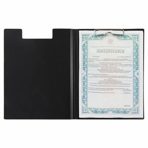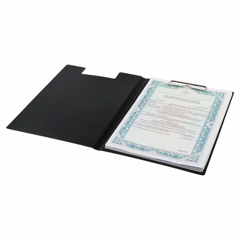 Папка-планшет с зажимом Staff черная, А4, с крышкой