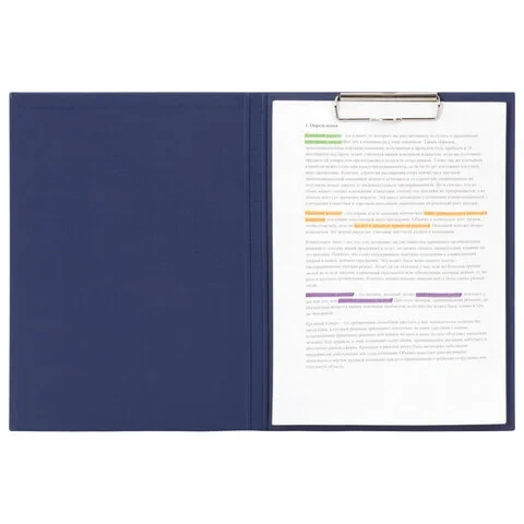 Выполнена из жесткого износостойкого картона с покрытием бумвинил. Металлический прижимной механизм с верхним расположением обеспечит возможность комфортной работы с бумагами на весу, а крышка позволит надежно защитить документы от негативного влияния внешних факторов. Имеет формат А4 (230х314 мм) и фиксирует до 90 листов.