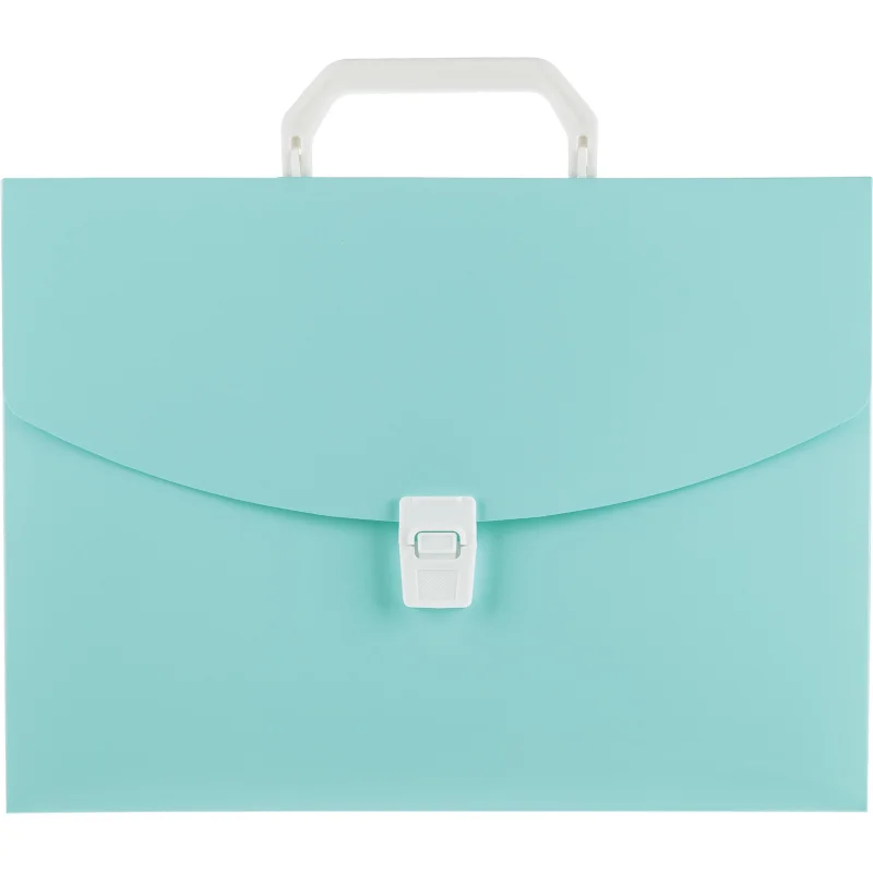 Портфель формата А4 из высококачественного пластика с текстурой поверхности «песок», на которой не видно отпечатков пальцев и мелких царапин. Предназначен для транспортировки документов. Цвет портфеля — бирюзовый коллекция Акварель. Портфель вмещает до 350 бумажных листов. Оснащен замком и ручкой. Размер — 335×230×35 мм, толщина — 0.7 мм