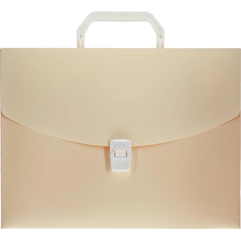 Портфель формата А4 из высококачественного пластика с текстурой поверхности «песок», на которой не видно отпечатков пальцев и мелких царапин. Предназначен для транспортировки документов. Цвет портфеля — желтый коллекция Акварель. Портфель вмещает до 350 бумажных листов. Оснащен замком и ручкой. Размер — 335×230×35 мм, толщина — 0.7 мм.