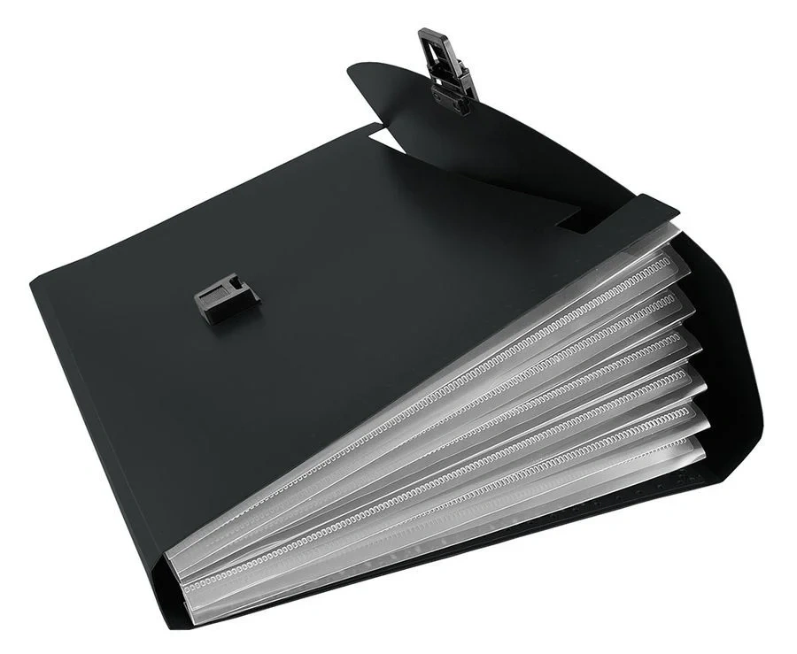 Папка-портфель 13 отд., А4, пластик 0.70мм, черная