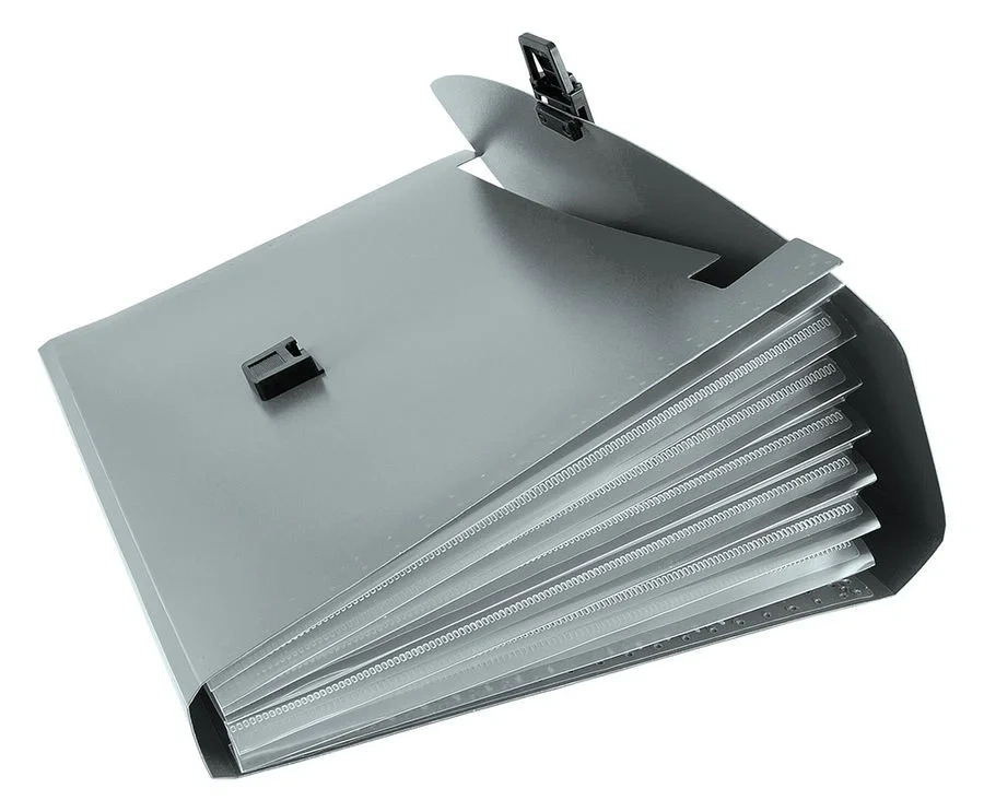 Папка-портфель 13 отд., А4, пластик 0.70мм, серая