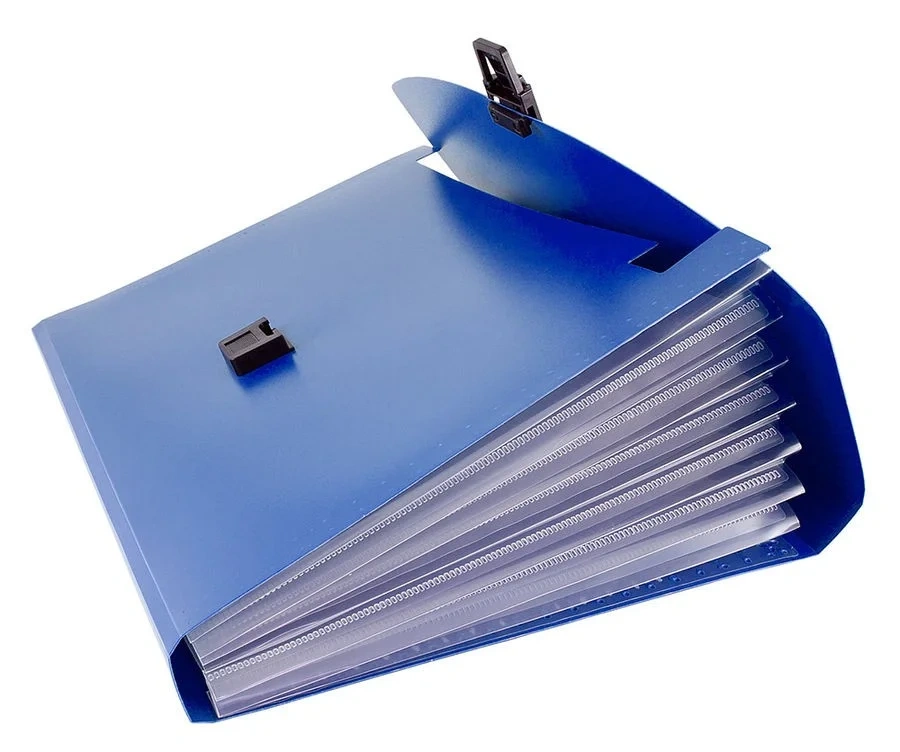 Папка-портфель 6 отд., А4, пластик 0.70мм, синяя