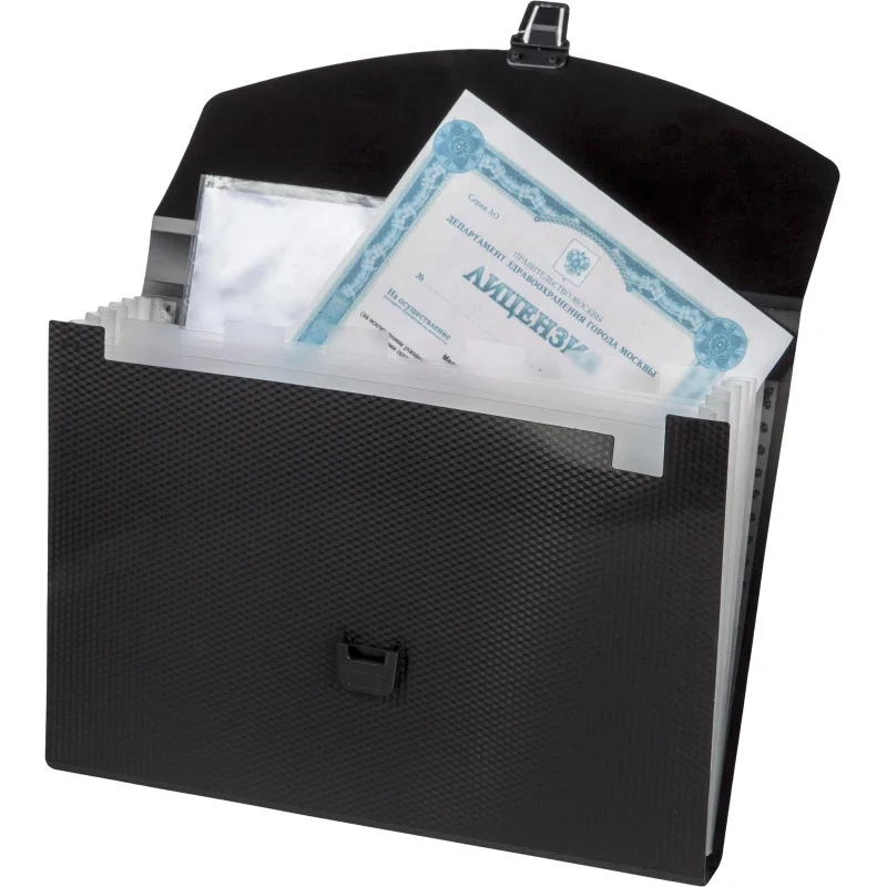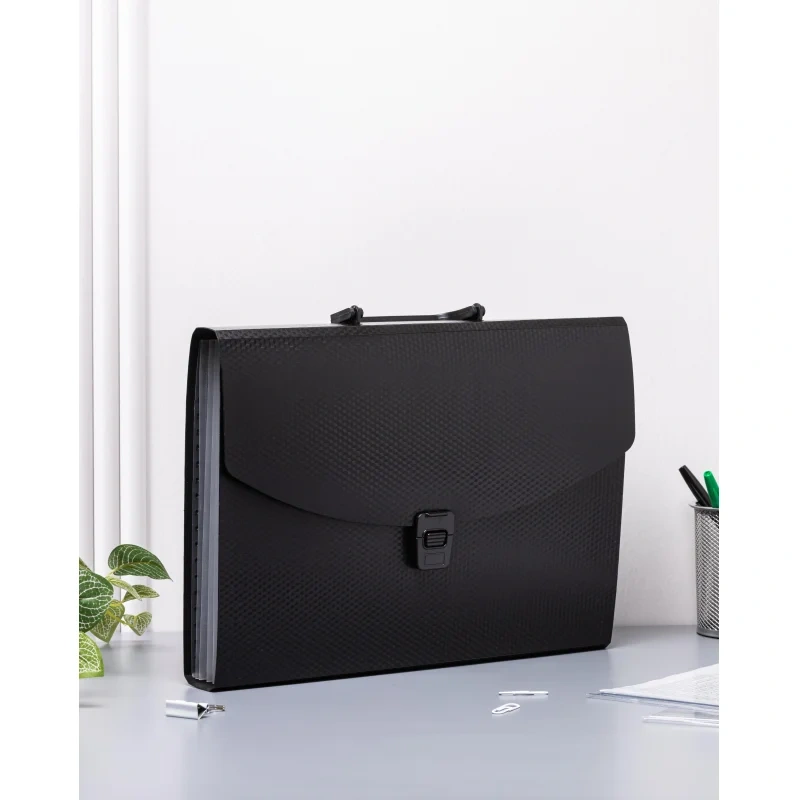 Папка-портфель 6 отдел. A4 пластик 0.7мм черный