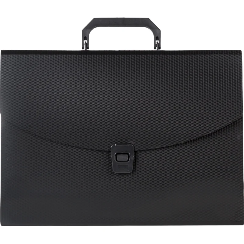 Пластиковый портфель, формат А4, изготовлен из полипропилена. Закрывается с помощью замка-защелки, имеется ручка. Внутри 6 отделений. Предназначен для хранения и транспортировки бумажных документов. Надежно защищает документы от смятия и загрязнения.
