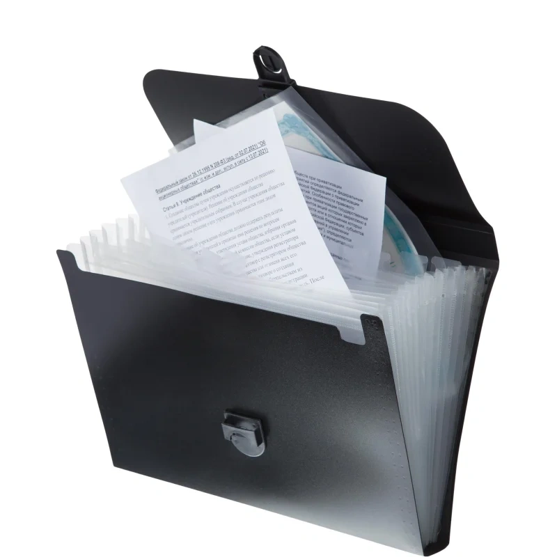 Папка-портфель Attache черная, А4, 12 отделений, пластик, 30мм
