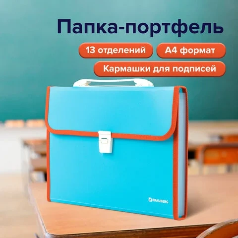 Папка-портфель Brauberg Joy бирюзовая, А4, 13 отделений