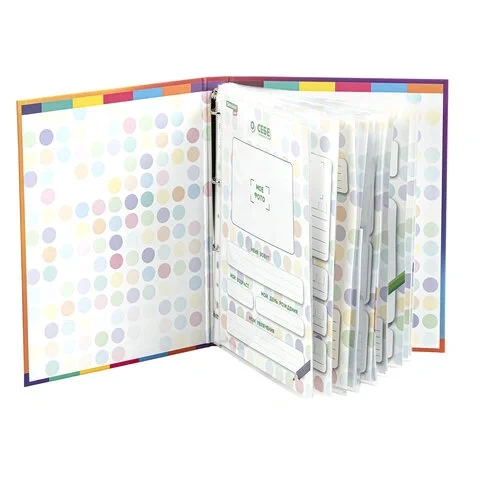 Также в комплект входят 10 вкладышей из плотной мелованной бумаги плотностью 115 г/м2 с разными рубриками: