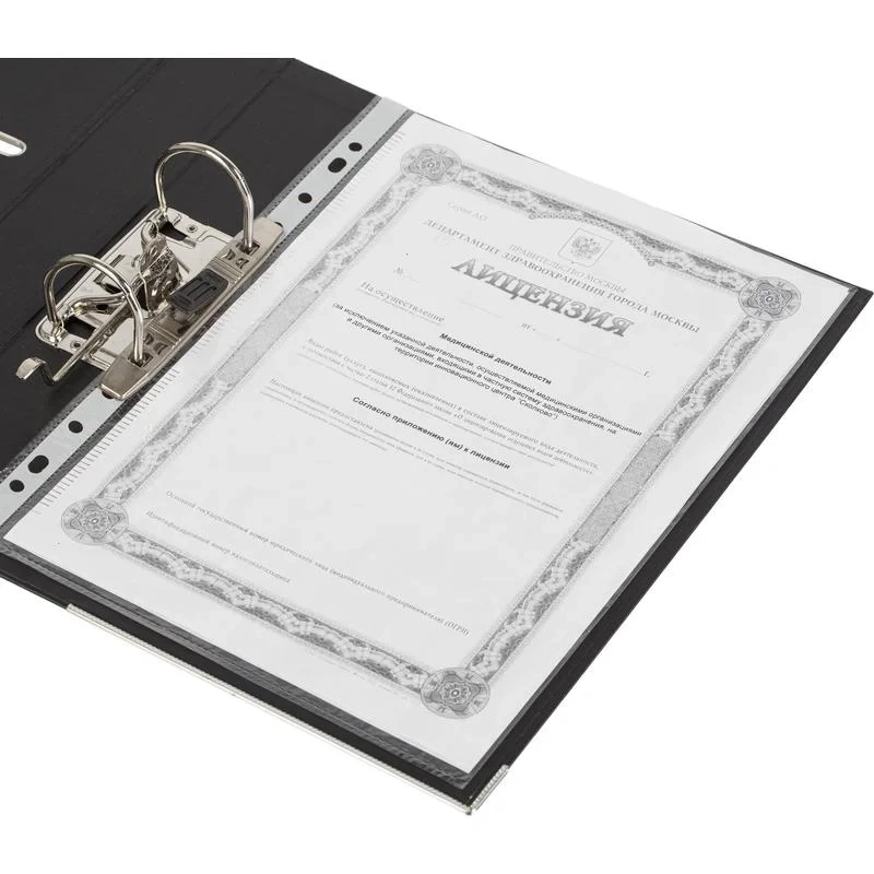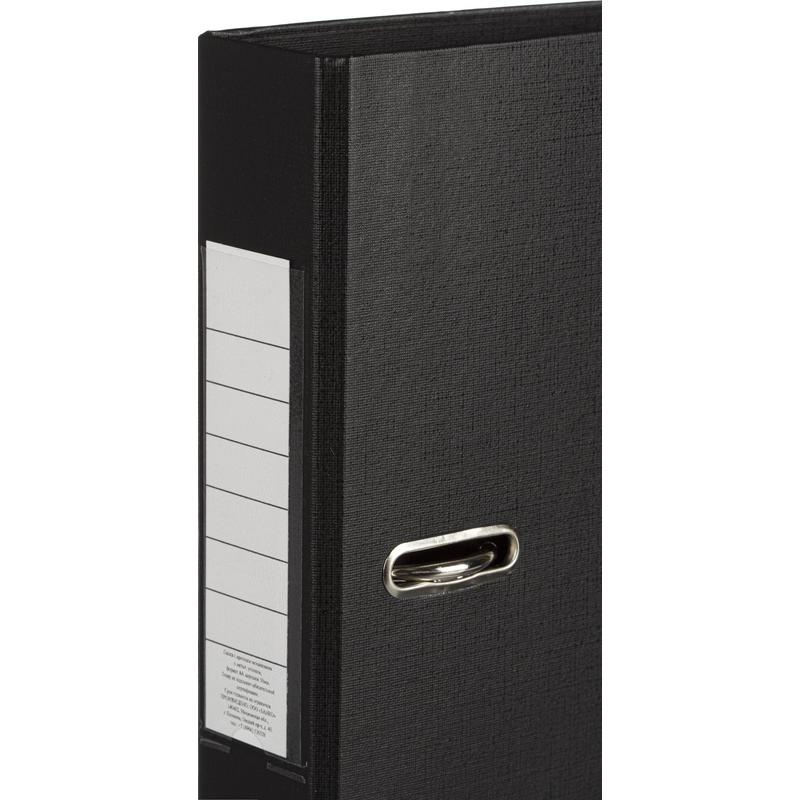 Папка-регистратор 50 мм ПБП2 черный с мет.уголком Папка с арочным механизмом с шириной корешка 50 мм, цвет черный. Папка изготовлена из картона, внешняя и внутренняя поверхность покрыта бумвинилом (ПВХ). Корешок - бумажный. Формат А4. Нижние края защищены от повреждений металлическим кантом. Папка вмещает 350 листов. Страна происхождения Россия. Законодательные и технические документы.
