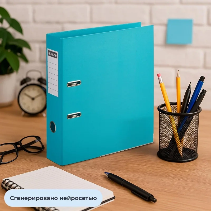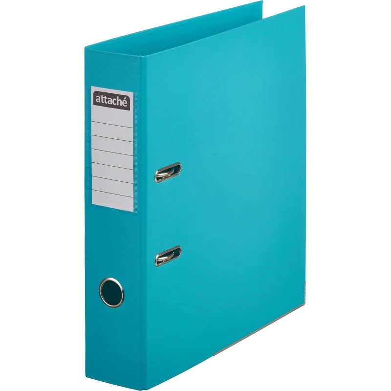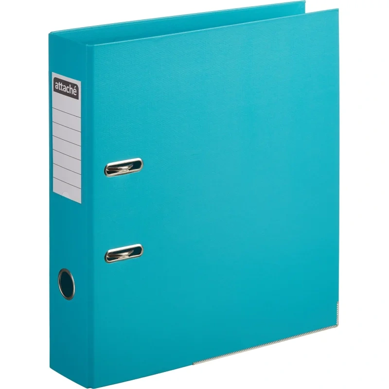 Папка-регистратор Attache А4 75 мм бирюзового цвета изготовлена из картона, внешняя и внутренняя поверхность покрыта бумвинилом (ПВХ). Нижние края защищены от повреждений металлическим кантом. Арочный механизм произведен в Чехии. Папка вмещает 480 листов стандартной плотности формата А4.