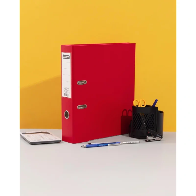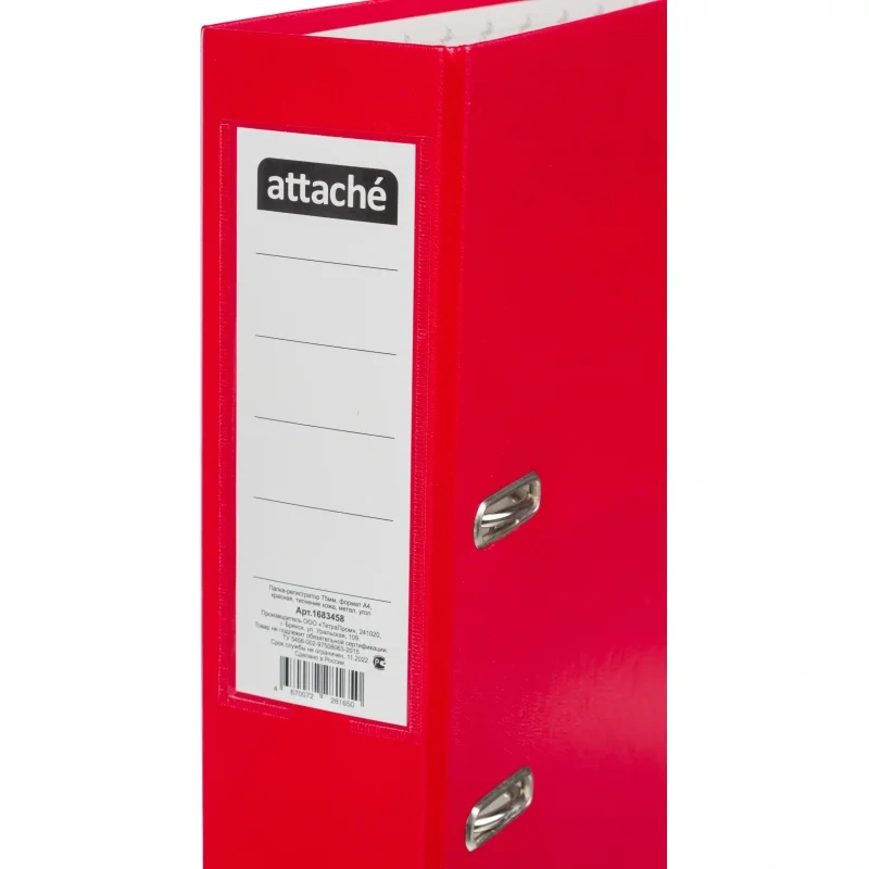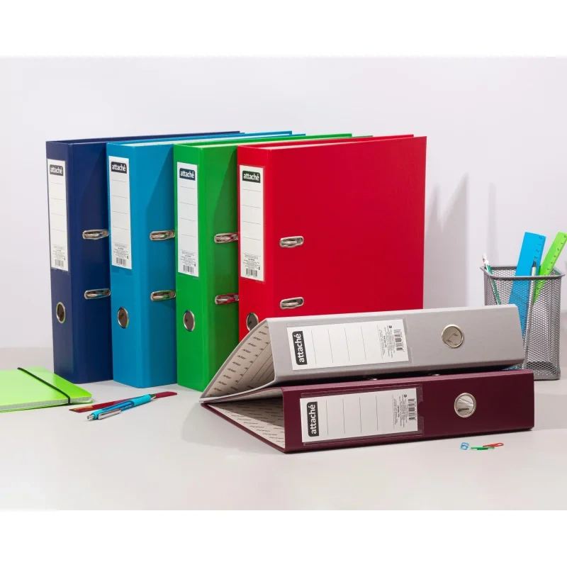 Папка-регистратор Attache 75 мм с арочным механизмом подходит для хранения и организации большого количества документов в офисе и дома. Формат А4 делает папку подходящей практически для всех видов типовых документов. Папка изготовлена из прочного картона, покрытого с внешней стороны бумвинилом, с внутренней стороны — бумагой.