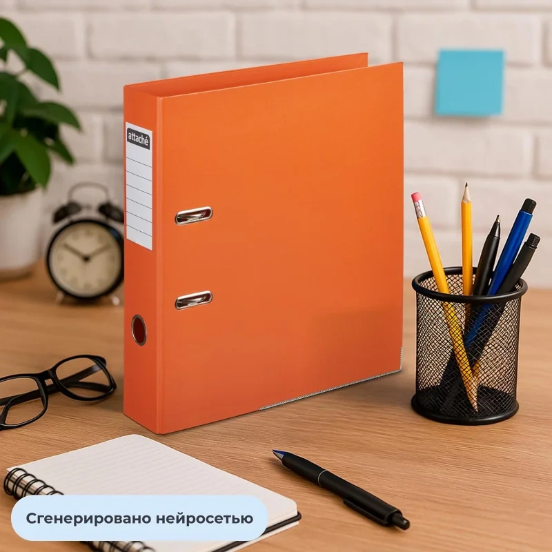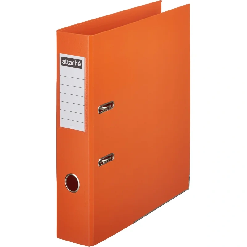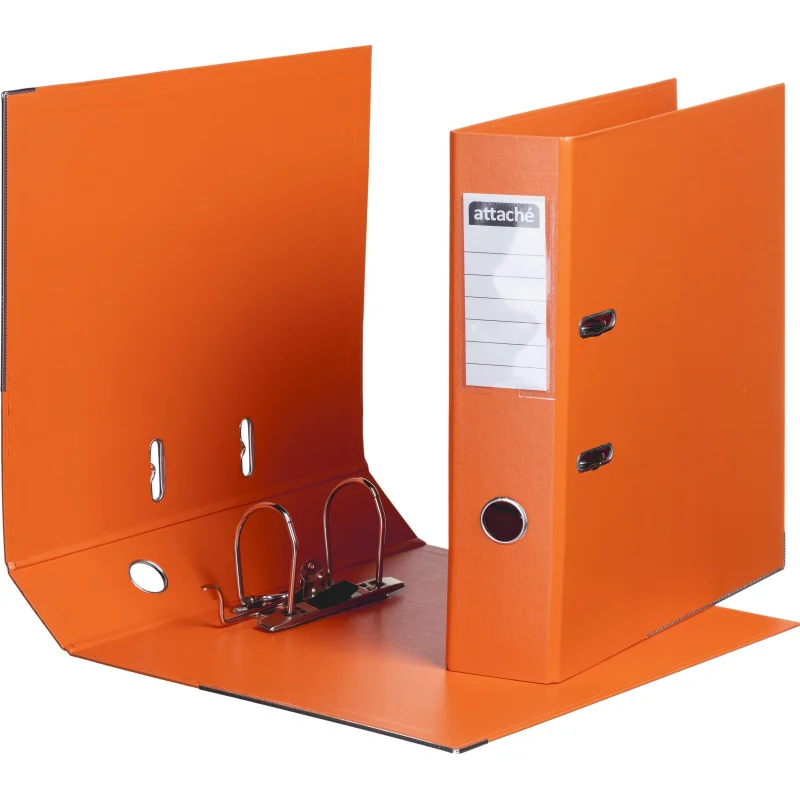 Папка-регистратор Attache А4 75 мм оранжевого цвета изготовлена из картона, внешняя и внутренняя поверхность покрыта бумвинилом (ПВХ). Нижние края защищены от повреждений металлическим кантом. Арочный механизм произведен в Чехии. Папка вмещает 480 листов стандартной плотности формата А4.