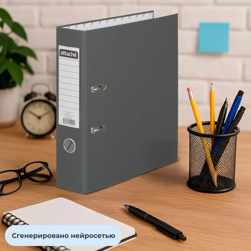 Папка-регистратор 75мм Attache А4, серая, тиснение кожа, метал угол