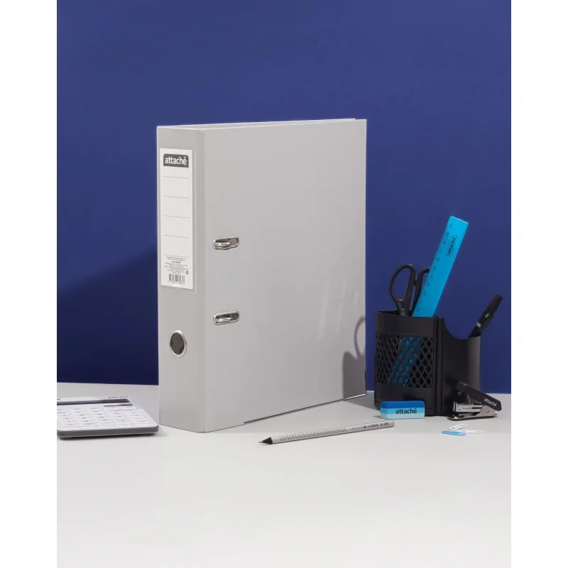 Папка-регистратор Attache 75 мм с арочным механизмом подходит для хранения и организации большого количества документов в офисе и дома. Формат А4 делает папку подходящей практически для всех видов типовых документов. Папка изготовлена из прочного картона, покрытого с внешней стороны бумвинилом, с внутренней стороны — бумагой.
