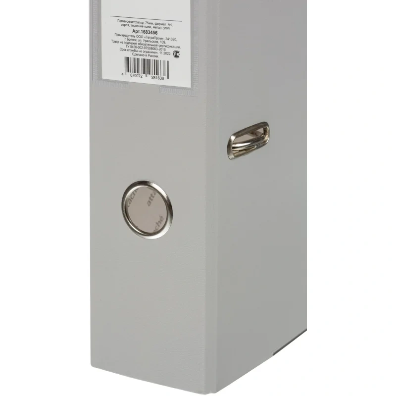 Папка-регистратор 75мм Attache А4, серая, тиснение кожа, метал. угол