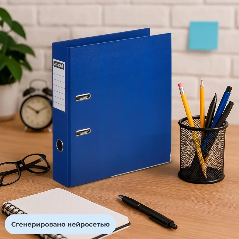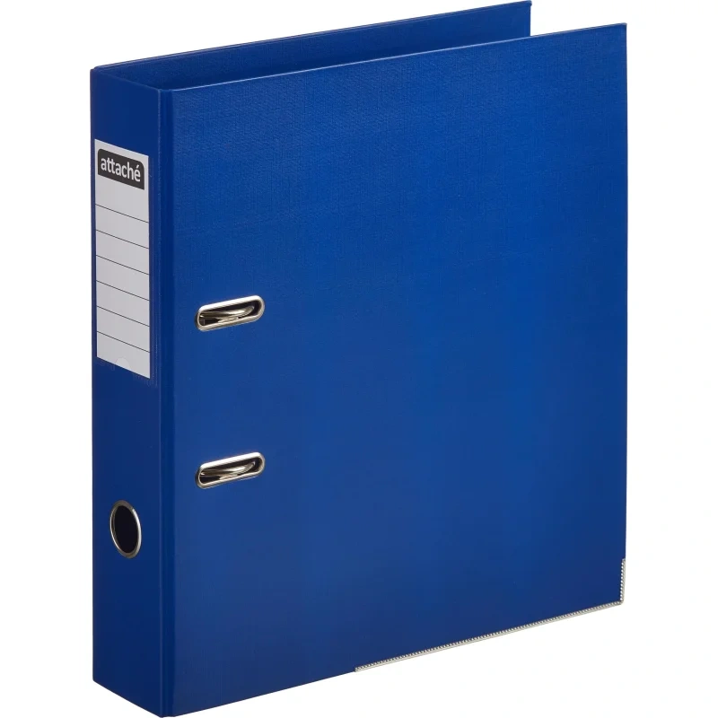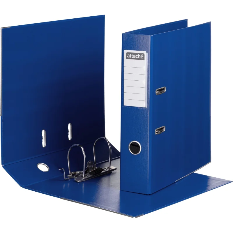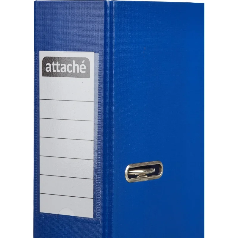 Папка-регистратор Attache А4 75 мм синего цвета изготовлена из картона, внешняя и внутренняя поверхность покрыта бумвинилом (ПВХ). Нижние края защищены от повреждений металлическим кантом. Арочный механизм произведен в Чехии. Папка вмещает 480 листов стандартной плотности формата А4.