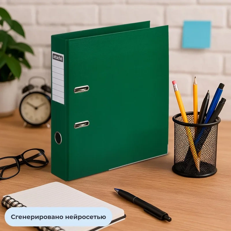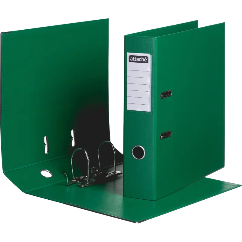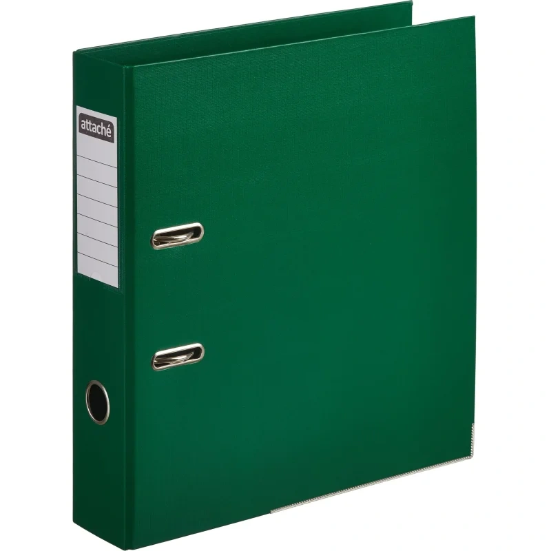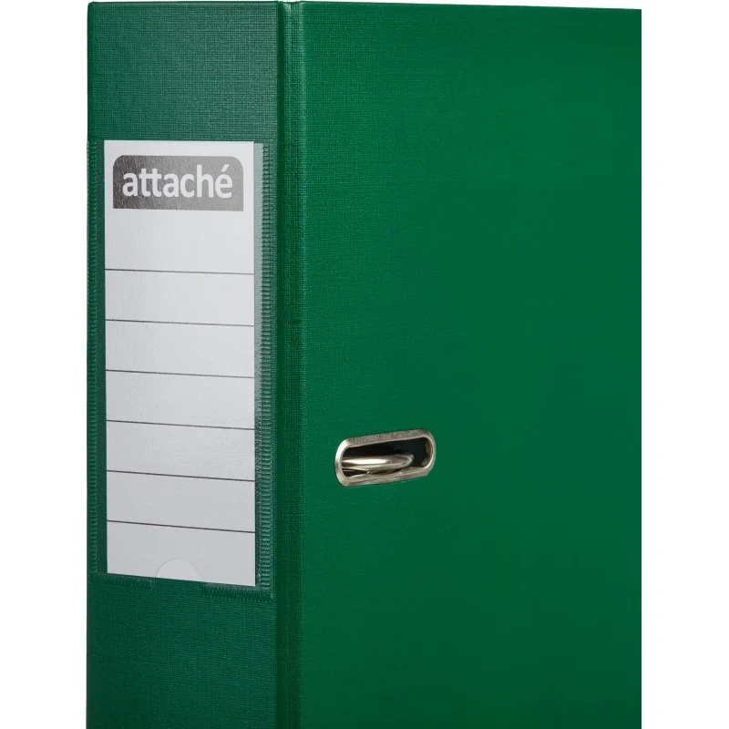 Папка-регистратор Attache А4 75 мм зеленого цвета изготовлена из картона, внешняя и внутренняя поверхность покрыта бумвинилом (ПВХ). Нижние края защищены от повреждений металлическим кантом. Арочный механизм произведен в Чехии. Папка вмещает 480 листов стандартной плотности формата А4.