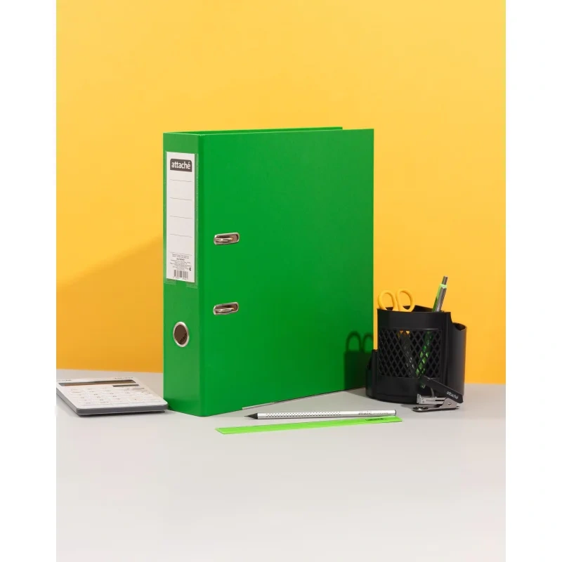 Папка-регистратор Attache 75 мм с арочным механизмом подходит для хранения и организации большого количества документов в офисе и дома. Формат А4 делает папку подходящей практически для всех видов типовых документов. Папка изготовлена из прочного картона, покрытого с внешней стороны бумвинилом, с внутренней стороны — бумагой.