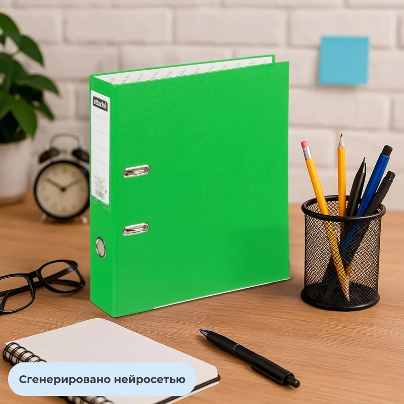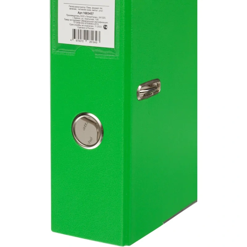 Папка-регистратор 75мм Attache А4, зеленая, тиснение кожа, метал. угол
