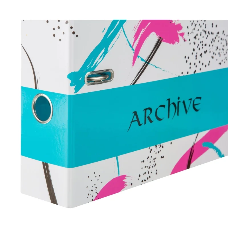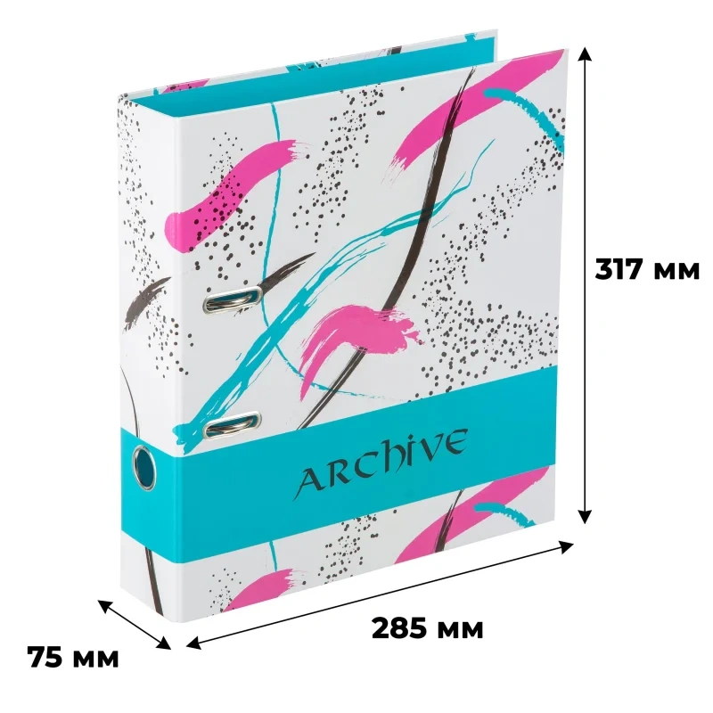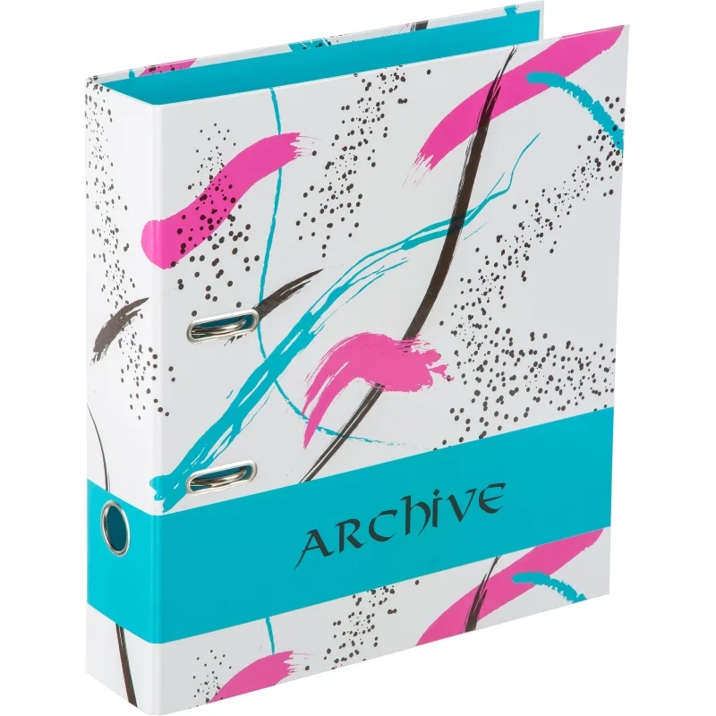 Папка-регистратор Attache Archive 75 мм изготовлена из плотного картона, покрытого ламинированной бумагой с двух сторон. Красивая голубая обложка украшена изящным абстрактным узором. Ширина корешка — 75 мм. Имеет кольцо для удобного захвата и извлечения с полки. Ориентирована вертикально, вмещает до 480 листов формата А4 стандартной плотности. На внутренней стороне папки предусмотрено поле для классификации документов.