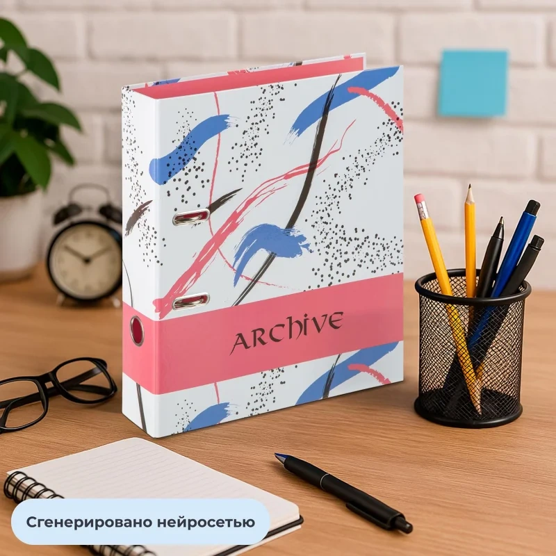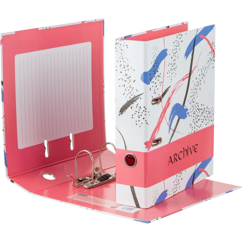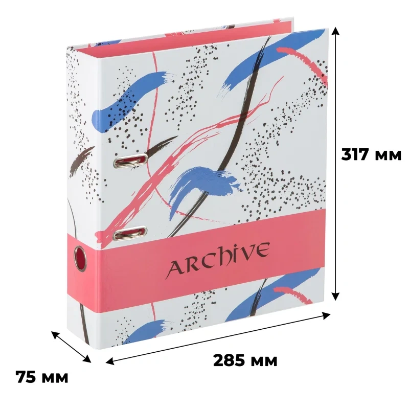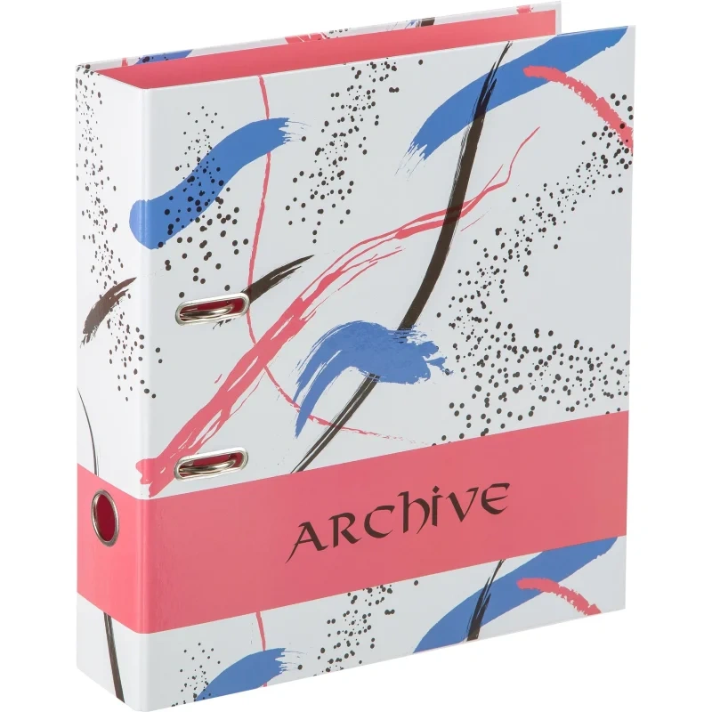 Папка-регистратор Attache Archive 75 мм изготовлена из плотного картона, покрытого ламинированной бумагой с двух сторон. Красивая обложка украшена изящным абстрактным узором. Ширина корешка — 75 мм. Имеет кольцо для удобного захвата и извлечения с полки. Ориентирована вертикально, вмещает до 480 листов формата А4 стандартной плотности. На внутренней стороне папки предусмотрено поле для классификации документов.