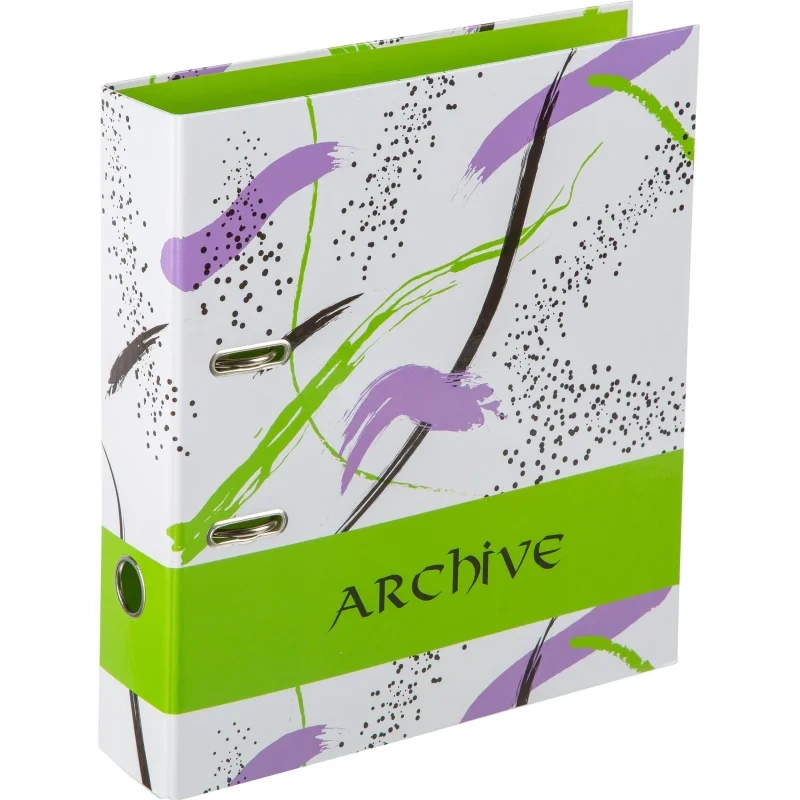 Папка-регистратор Attache Archive 75 мм изготовлена из плотного картона, покрытого ламинированной бумагой с двух сторон. Красивая зеленая обложка украшена изящным абстрактным узором. Ширина корешка — 75 мм. Имеет кольцо для удобного захвата и извлечения с полки. Ориентирована вертикально, вмещает до 480 листов формата А4 стандартной плотности. На внутренней стороне папки предусмотрено поле для классификации документов.