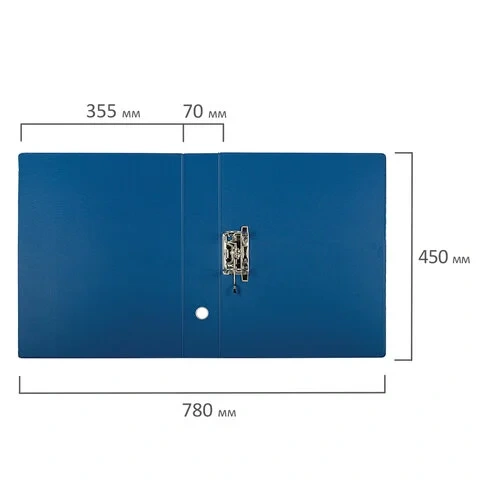 Папка большого формата А3 с вертикальной ориентацией изготовлена из высококачественного износоустойчивого картона с двусторонним ПВХ-покрытием синего цвета. Ширина корешка в 70 мм позволяет разместить до 500 листов. Надежный арочный механизм легко справляется с ежедневными нагрузками. Корешок папки снабжен этикеткой для маркировки содержимого, что позволяет структурировать информацию.