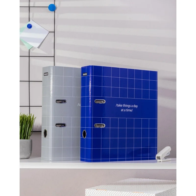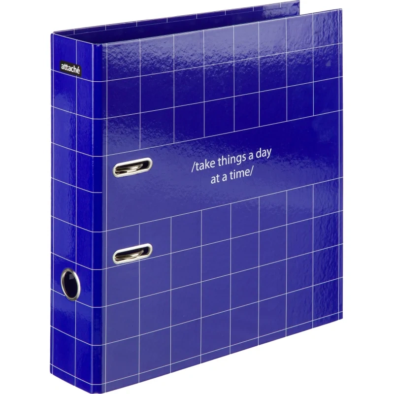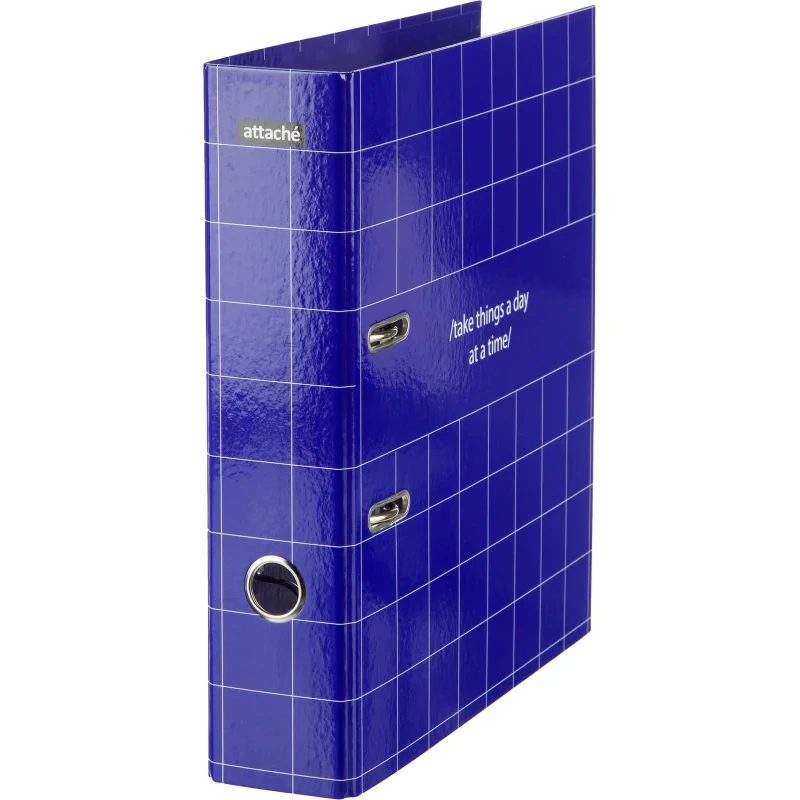 Папка-регистратор Attache Comfort 75 мм изготовлена из плотного картона, покрытого ламинированной бумагой синего цвета.