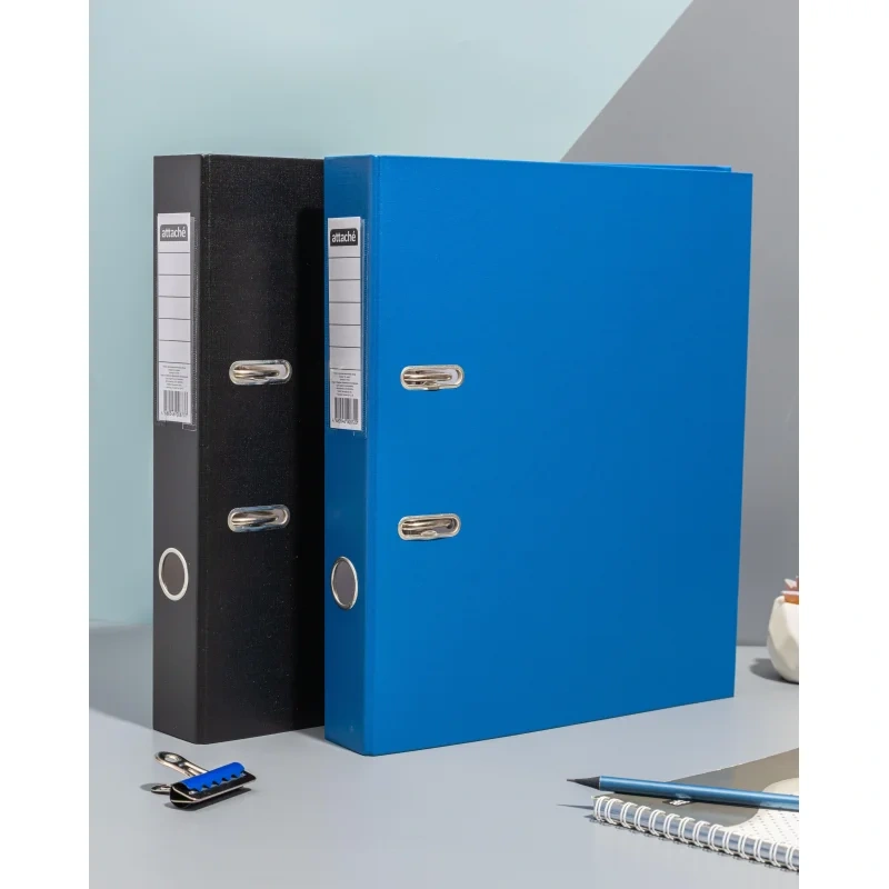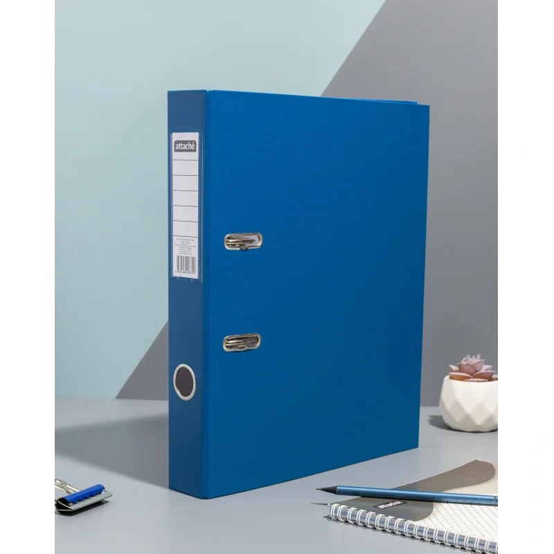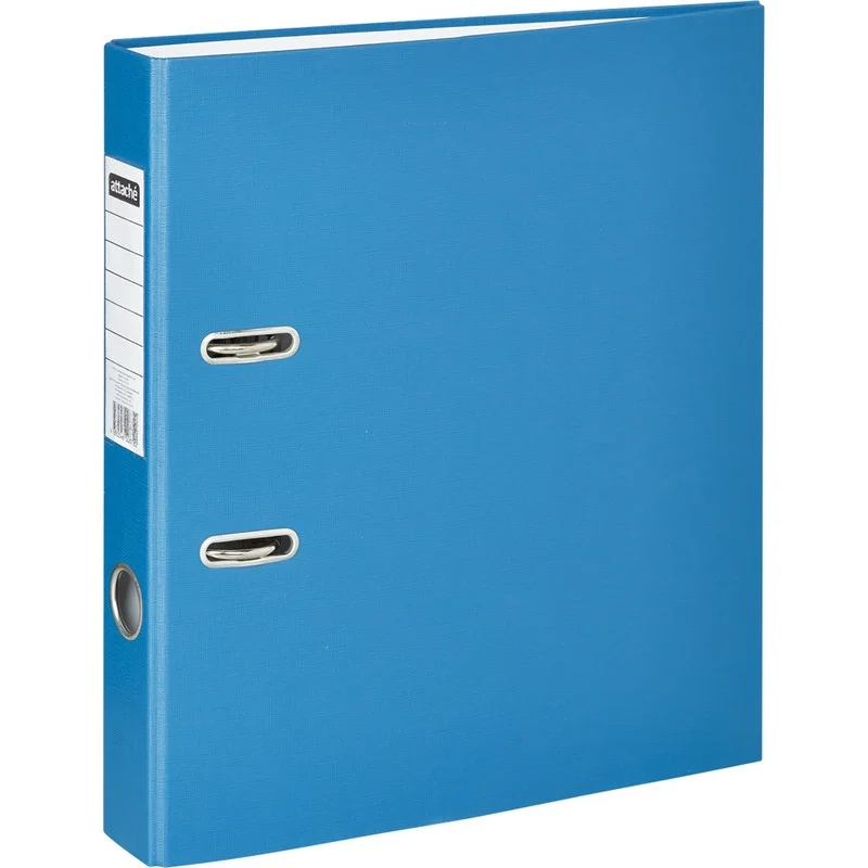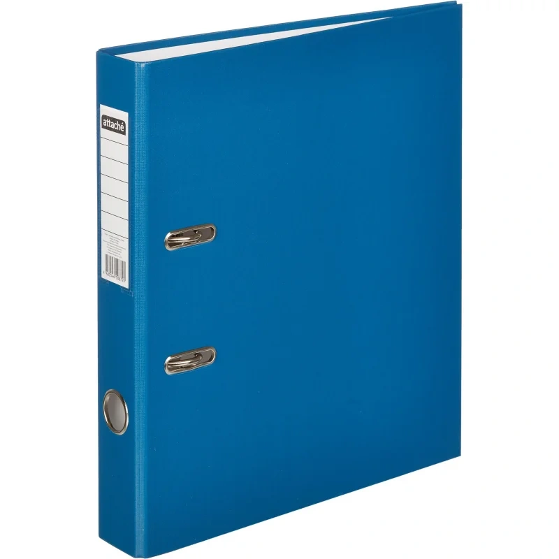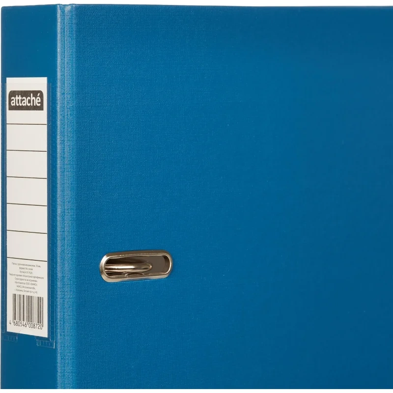 Папка-регистратор Attache (Attache Economy) с арочным механизмом изготовлена из плотного картона, внешняя поверхность покрыта ПВХ, внутренняя — бумагой. Ширина корешка — 50 мм, цвет — синий. Формат А4. Арочный механизм произведен в Чехии. Папка вмещает до 350 листов. Страна происхождения — Россия.