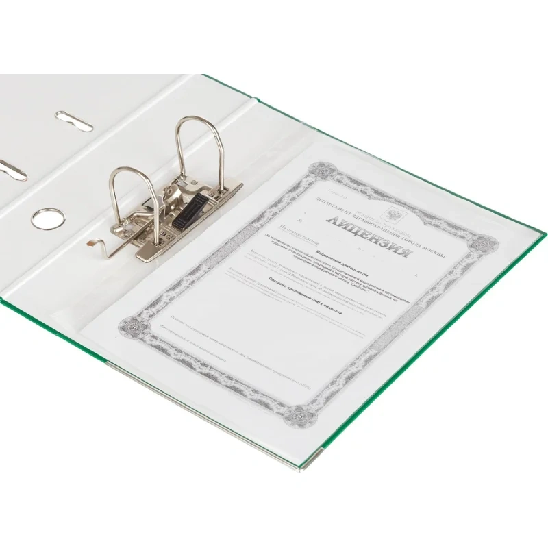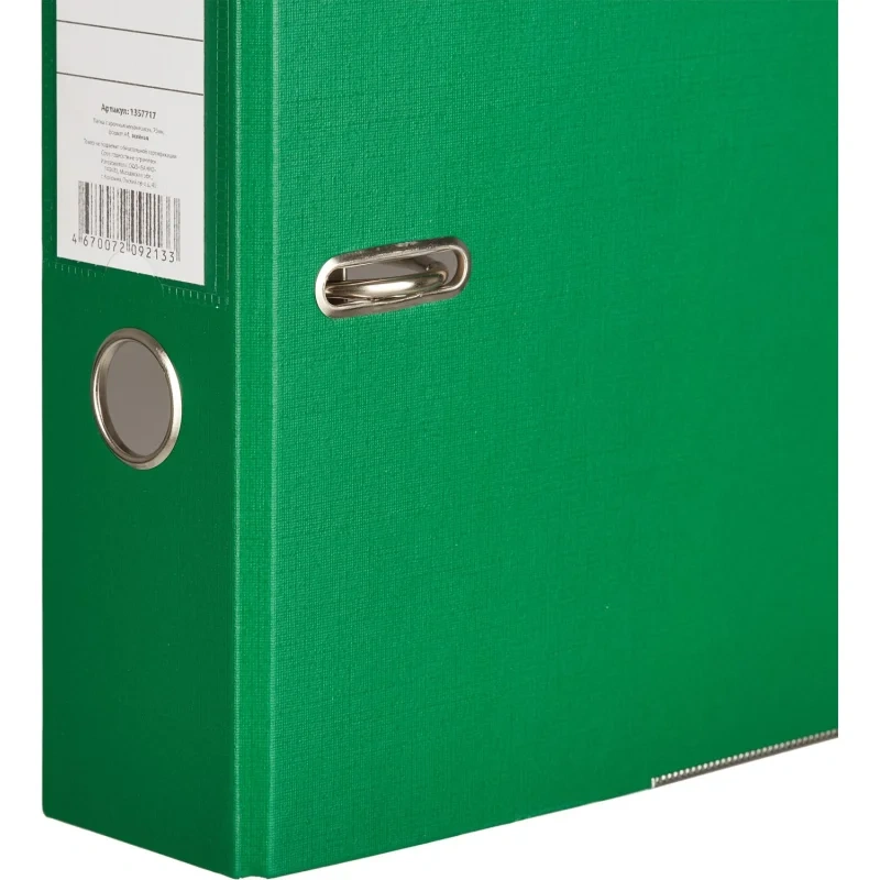 Папка-регистратор Attache вертикальная 75 мм зеленого цвета позволяет хранить и систематизировать увеличенный запас документов в одном регистраторе. Папка с арочным механизмом изготовлена из плотного картона, обеспечивающего жесткость. ПВХ-покрытие надежно защищает папку от износа при интенсивной работе. Корешок шириной 75 мм оснащен торцевым карманом и сменной картонной этикеткой для маркировки. Специальные прорези фиксируют папку в закрытом положении. Кольцо-захват на торце папки предназначено для удобного извлечения с полки. Вмещает до 480 листов стандартной плотности.