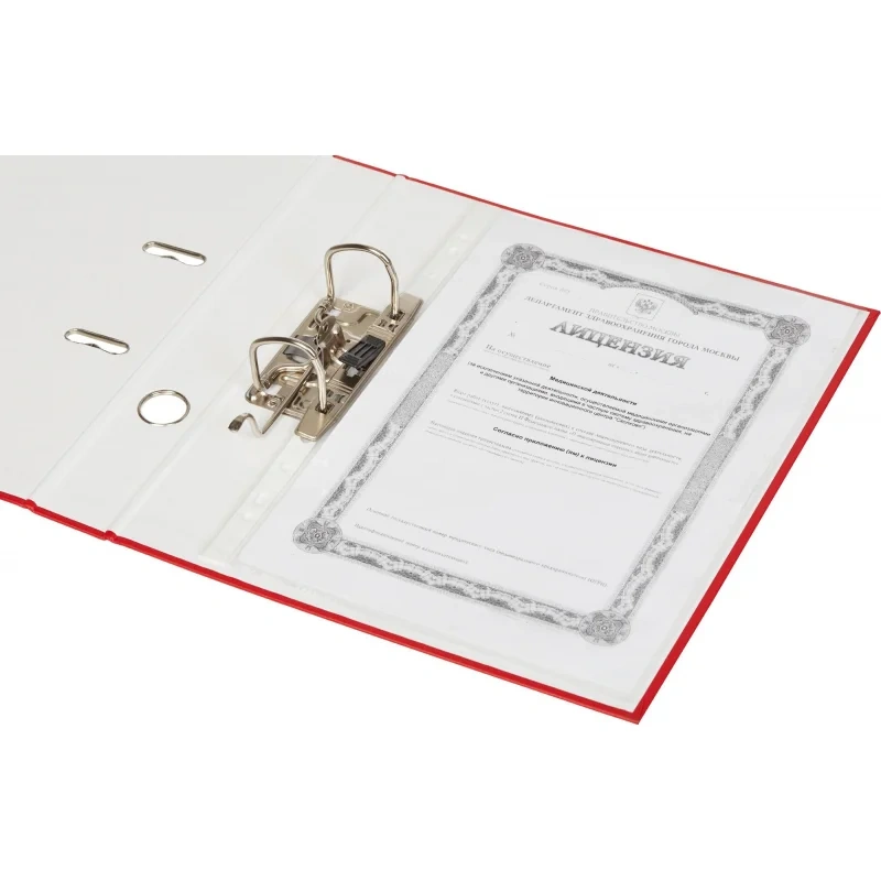 Овальные кольца на верхней крышке удерживают папку закрытой даже при большом количестве документов.