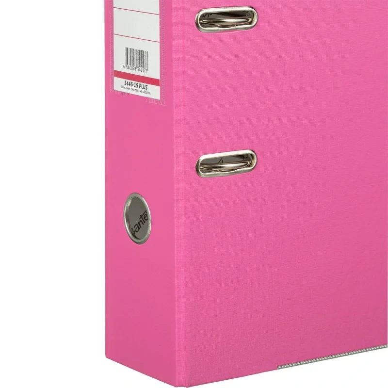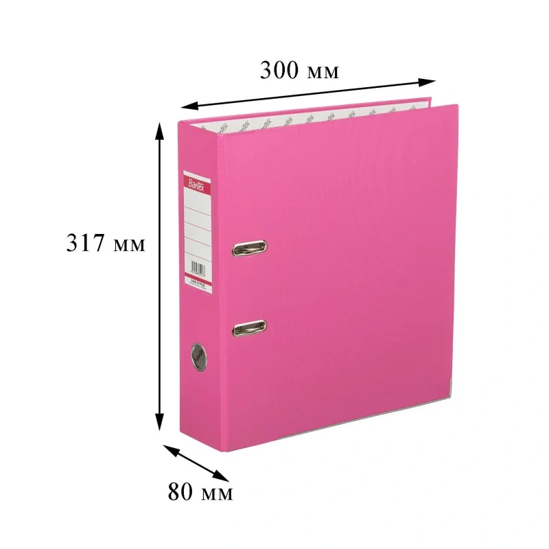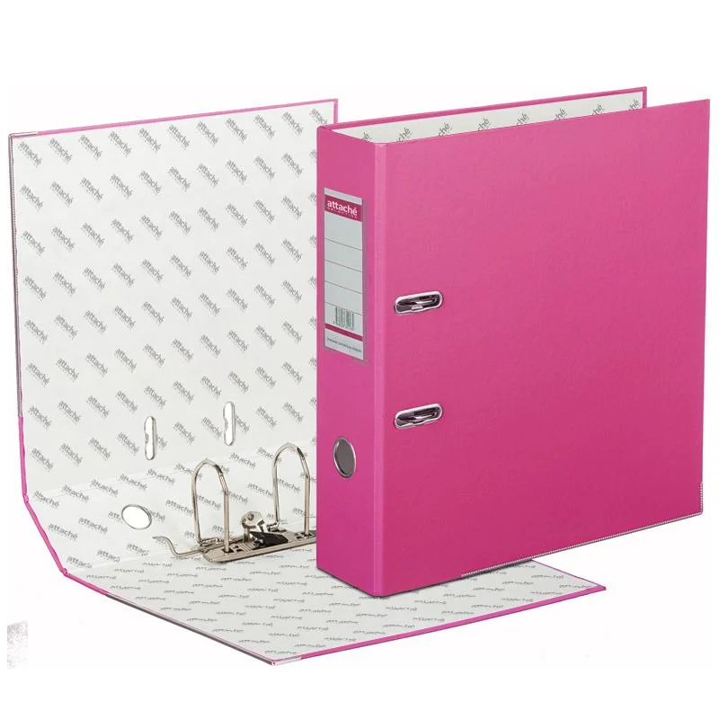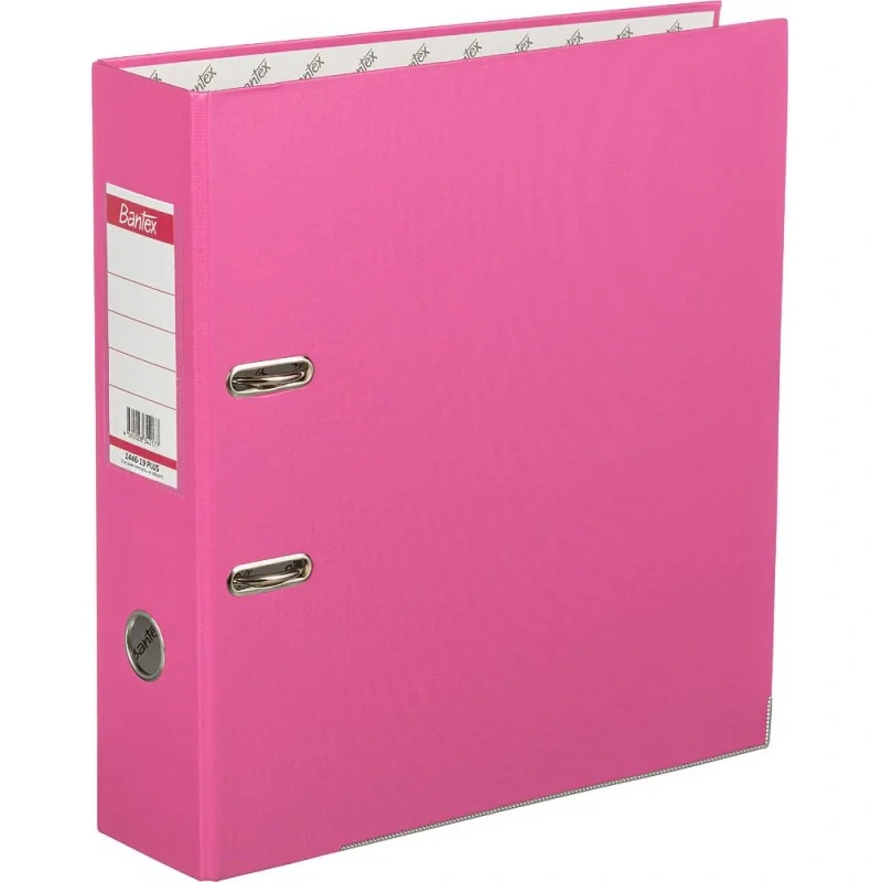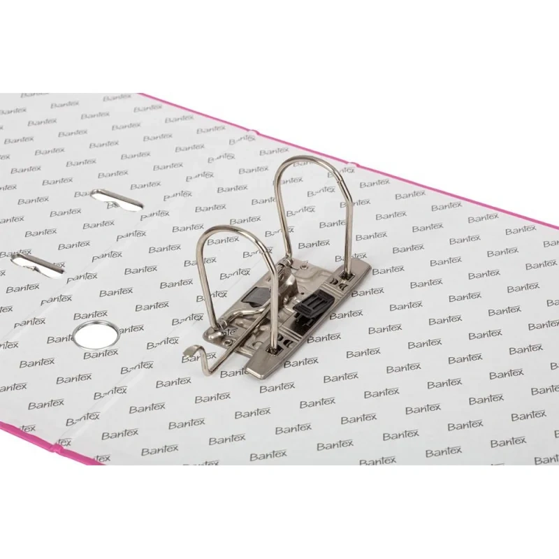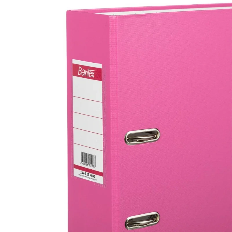 Папка-регистратор Bantex (Attache Selection) из коллекции Economy Plus изготовлена из прочного картона толщиной 1,9 мм, покрытого с внешней стороны розовым бумвинилом, а с внутренней — бумагой с печатью Bantex. Формат А4+, папка ориентирована вертикально. Вмещает до 600 листов стандартной плотности. Оснащена арочным механизмом, произведенным в Чехии. На корешке шириной 80 мм есть карман со сменной этикеткой и круглое кольцо для удобного захвата. Овальные кольца на верхней крышке удерживают папку закрытой даже при большом количестве документов. Нижние края папки защищены металлическим кантом. Цветовая гамма включает 11 цветов.