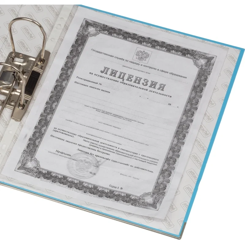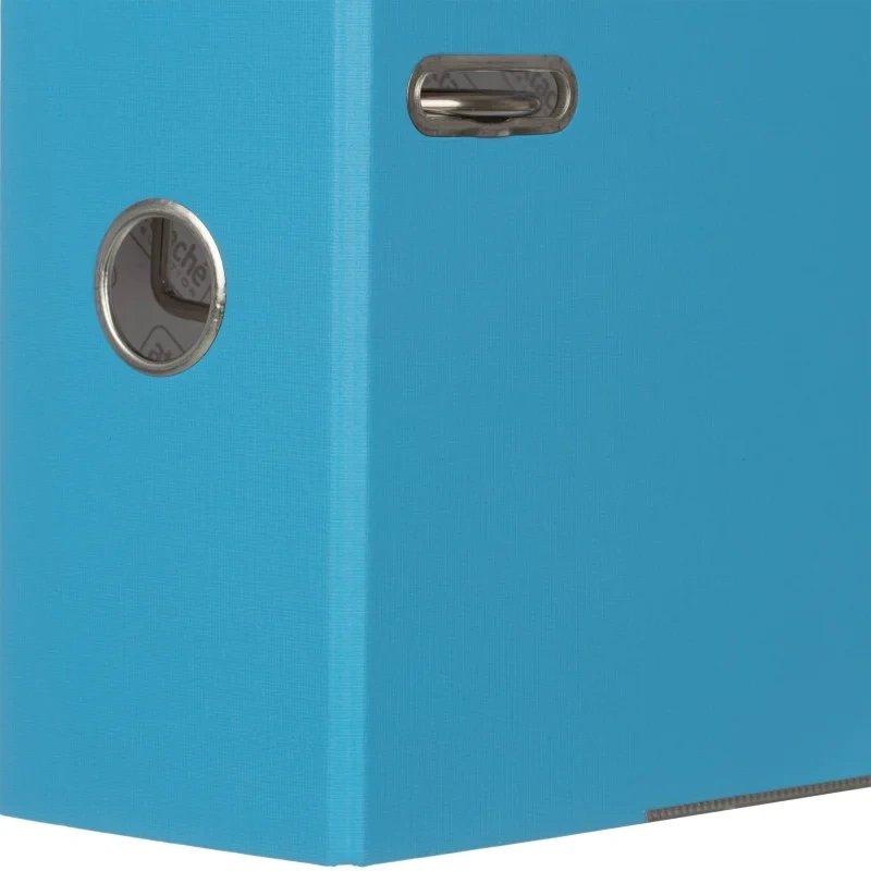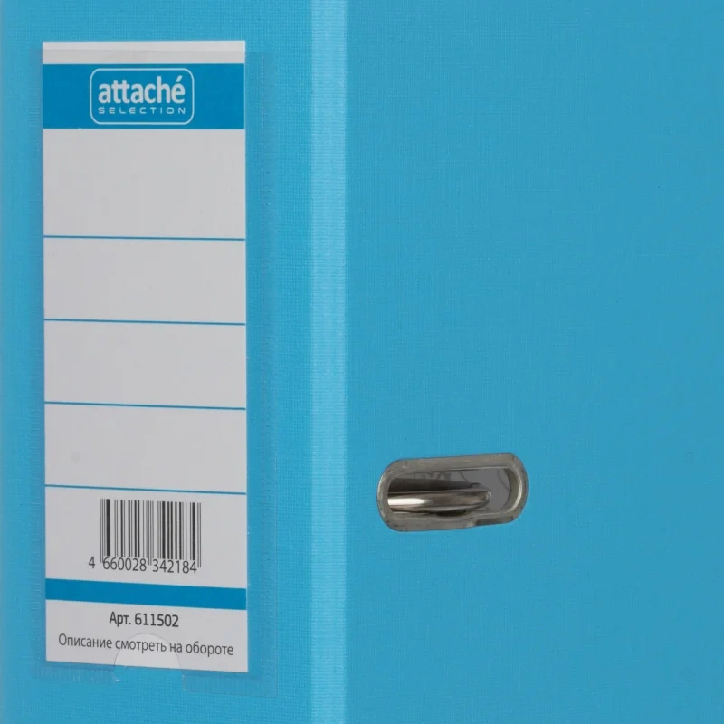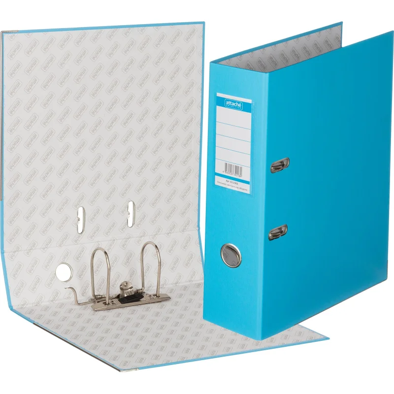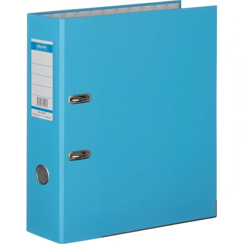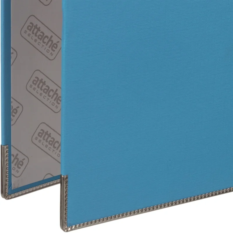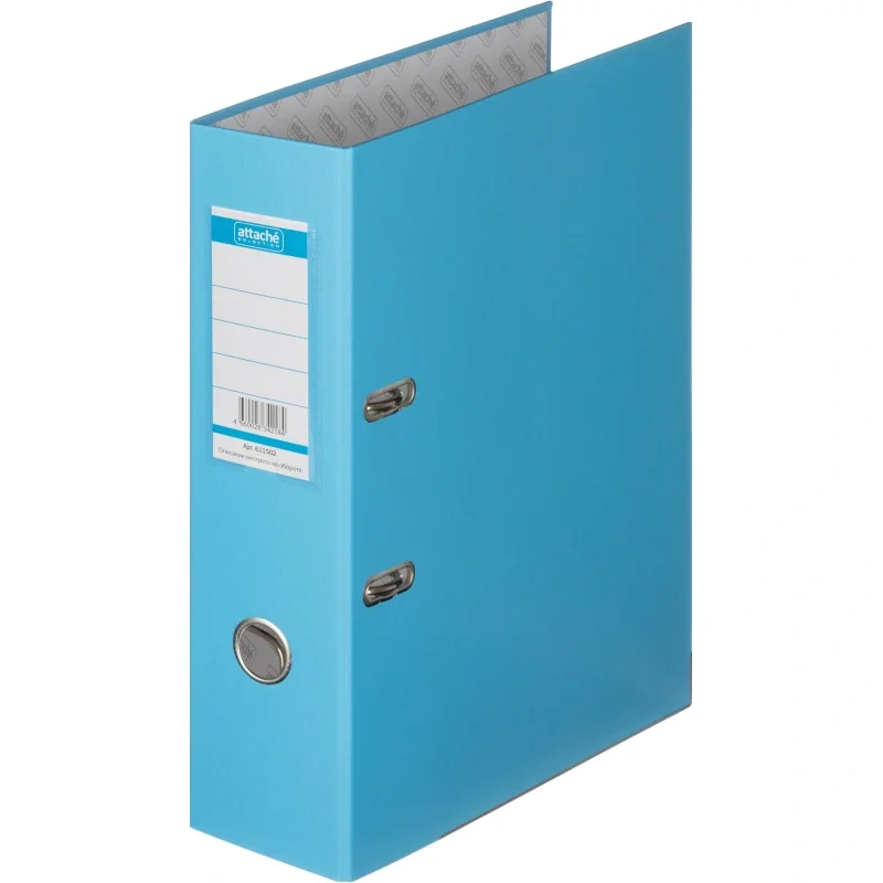 Папка-регистратор Bantex (Attache Selection) из коллекции Economy Plus изготовлена из прочного картона толщиной 1,9 мм, покрытого с внешней стороны голубым бумвинилом, а с внутренней — бумагой с печатью Bantex. Формат А4+, папка ориентирована вертикально. Вмещает до 600 листов стандартной плотности. Оснащена арочным механизмом, произведенным в Чехии. На корешке шириной 80 мм есть карман со сменной этикеткой и круглое кольцо для удобного захвата. Овальные кольца на верхней крышке удерживают папку закрытой даже при большом количестве документов. Нижние края папки защищены металлическим кантом. Цветовая гамма включает 11 цветов.