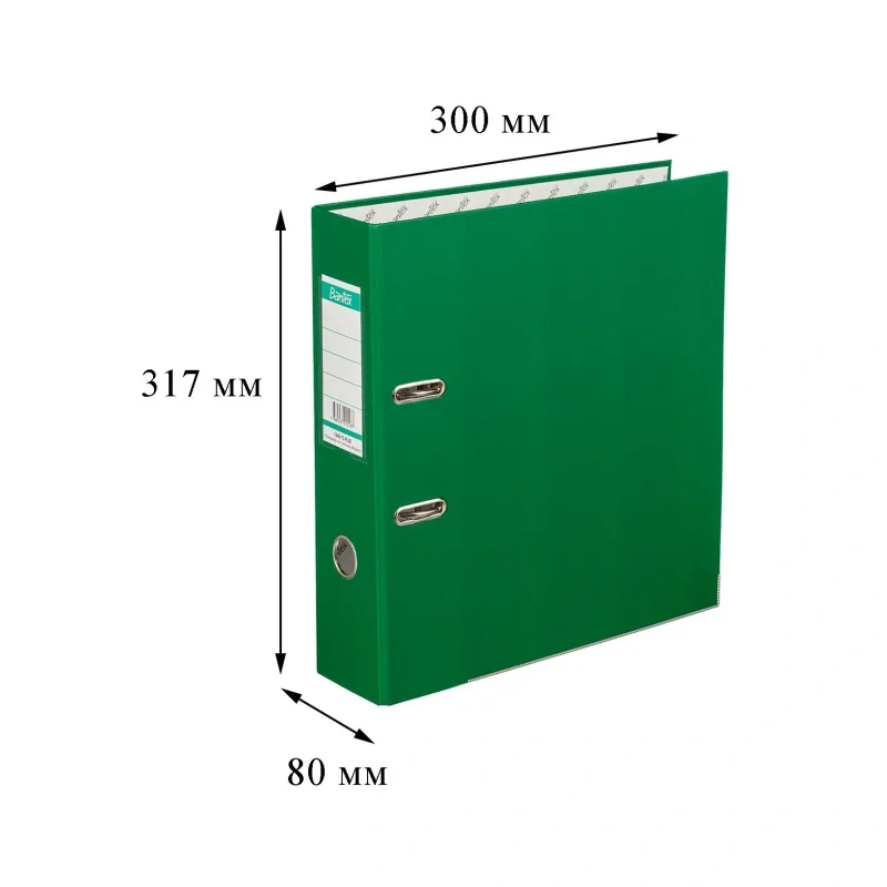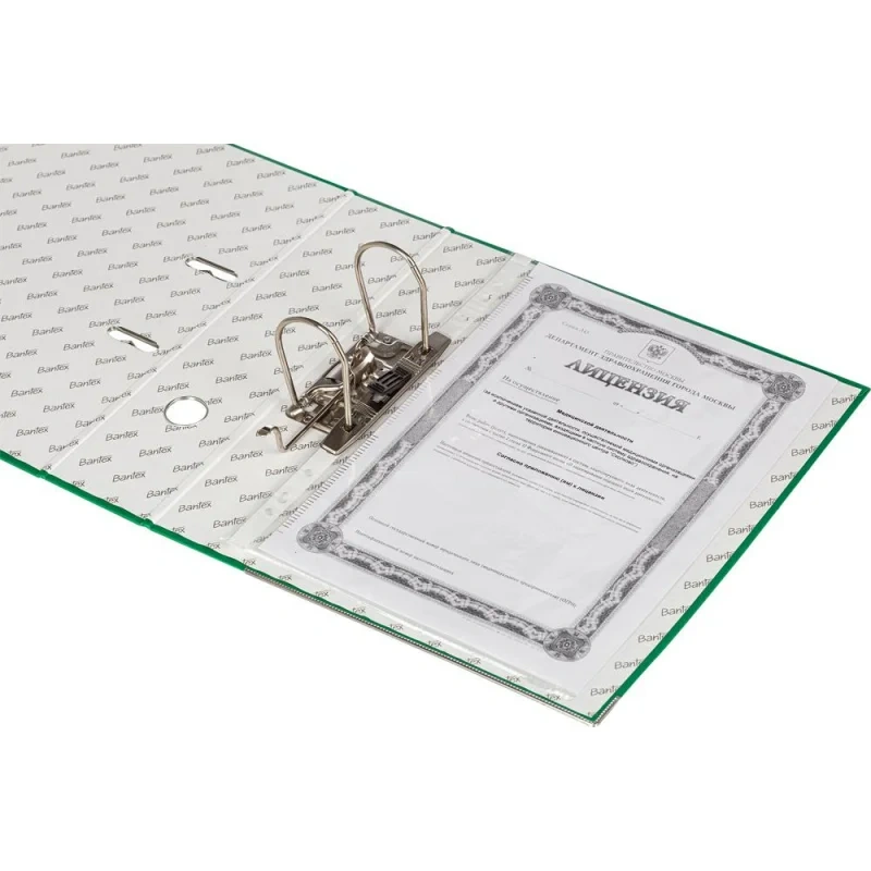 Папка-регистратор Bantex (Attache Selection) из коллекции Economy Plus изготовлена из прочного картона толщиной 1,9 мм, покрытого с внешней стороны бумвинилом зеленого цвета, а с внутренней — бумагой с печатью Bantex. Формат А4+, папка ориентирована вертикально. Вмещает до 600 листов стандартной плотности. Оснащена арочным механизмом, произведенным в Чехии. На корешке шириной 80 мм есть карман со сменной этикеткой и круглое кольцо для удобного захвата. Овальные кольца на верхней крышке удерживают папку закрытой даже при большом количестве документов. Нижние края папки защищены металлическим кантом. Цветовая гамма включает 11 цветов.