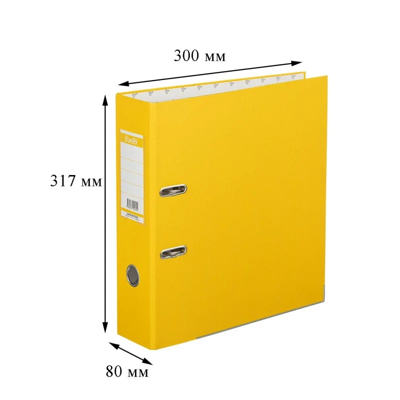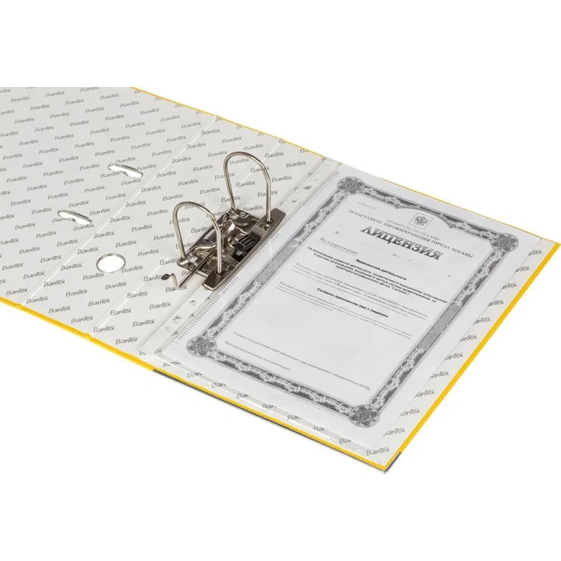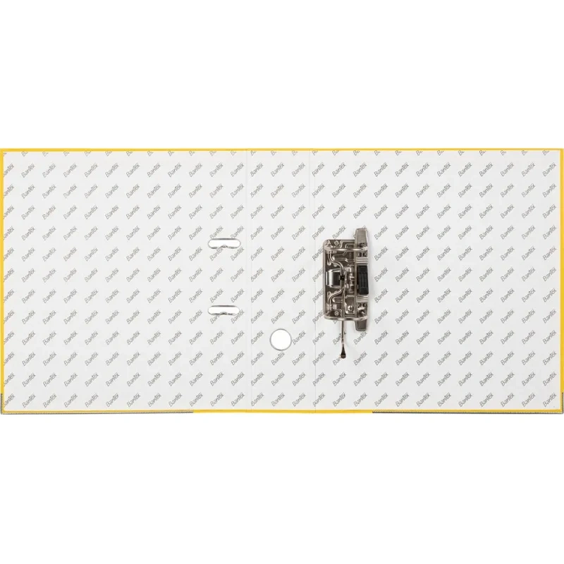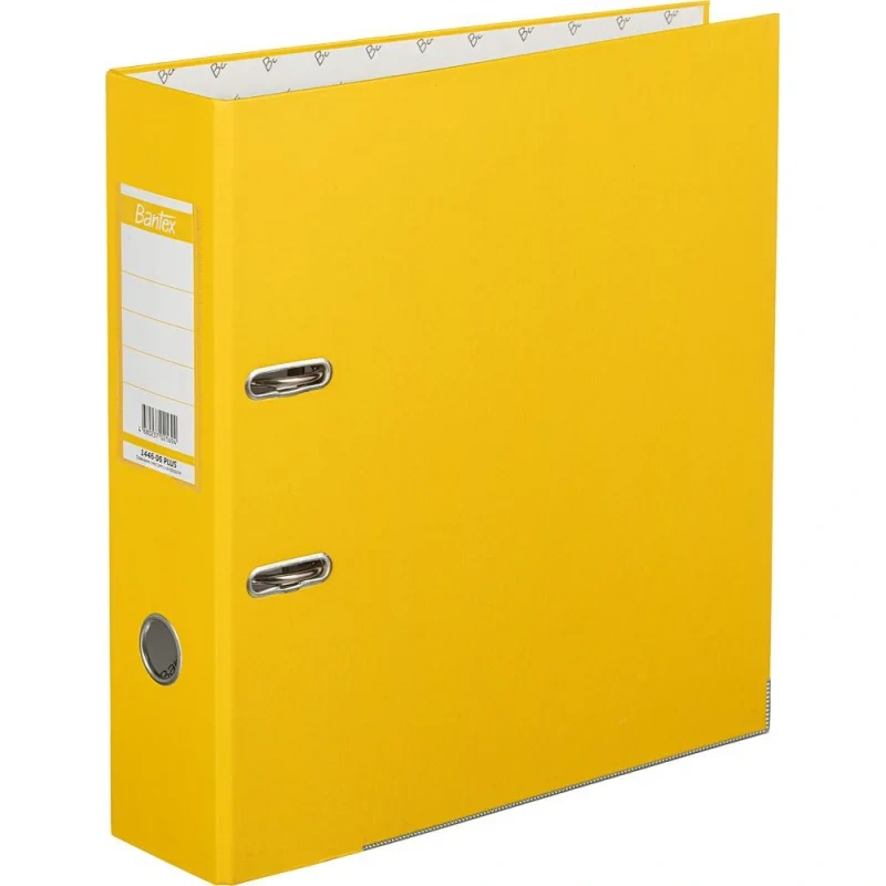 Папка-регистратор Bantex (Attache Selection) из коллекции Economy Plus изготовлена из прочного картона толщиной 1,9 мм, покрытого с внешней стороны желтым бумвинилом, а с внутренней — бумагой с печатью Bantex. Формат А4+, папка ориентирована вертикально. Вмещает до 600 листов стандартной плотности. Оснащена арочным механизмом, произведенным в Чехии. На корешке шириной 80 мм есть карман со сменной этикеткой и круглое кольцо для удобного захвата. Овальные кольца на верхней крышке удерживают папку закрытой даже при большом количестве документов. Нижние края папки защищены металлическим кантом. Цветовая гамма включает 11 цветов.