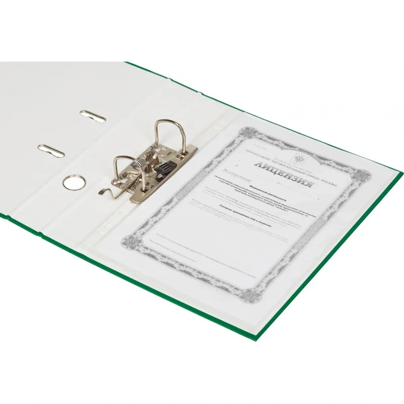 Овальные кольца на верхней крышке удерживают папку закрытой даже при большом количестве документов.