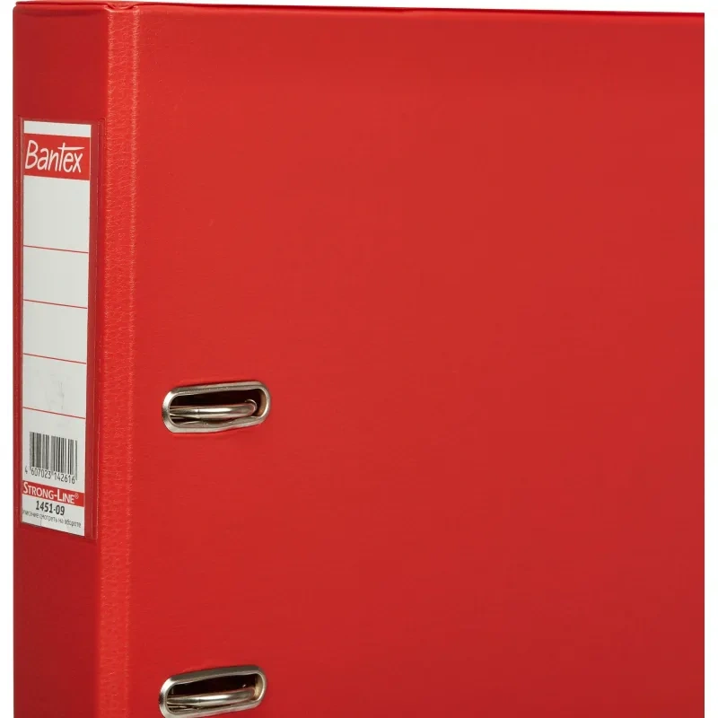 Папка-регистратор Bantex (Attache Selection) из коллекции Strong красного цвета изготовлена из прочного картона толщиной 1,9 мм, покрытого с двух сторон пленкой ПВХ. Формат А4, папка ориентирована вертикально. Вмещает до 350 листов стандартной плотности. Оснащена арочным механизмом, произведенным в Чехии. На корешке шириной 50 мм есть карман со сменной этикеткой и круглое кольцо для удобства захвата. По нижнему краю папка окантована дополнительным слоем пленки ПВХ. Овальные кольца на верхней крышке удерживают папку закрытой даже при большом количестве документов. Цветовая гамма включает 12 цветов. Допустима влажная обработка.